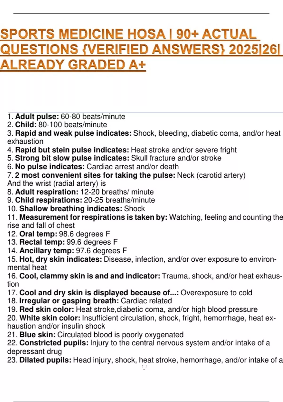 23. Dilated pupils: Head injury, shock, heat stroke, hemorrhage, and/or intake of a