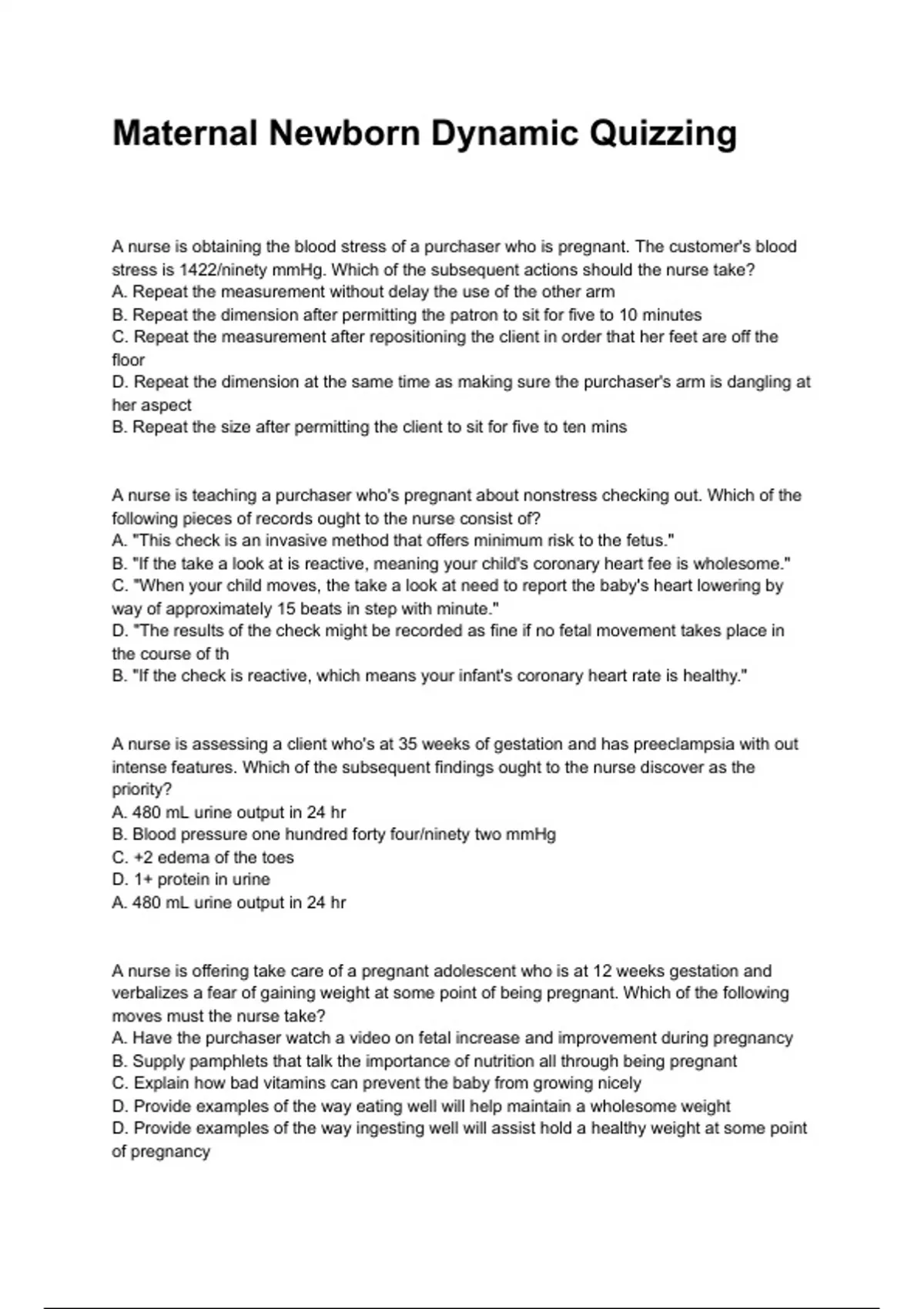 stress is 1422/ninety mmHg. Which of the subsequent actions should the nurse take?