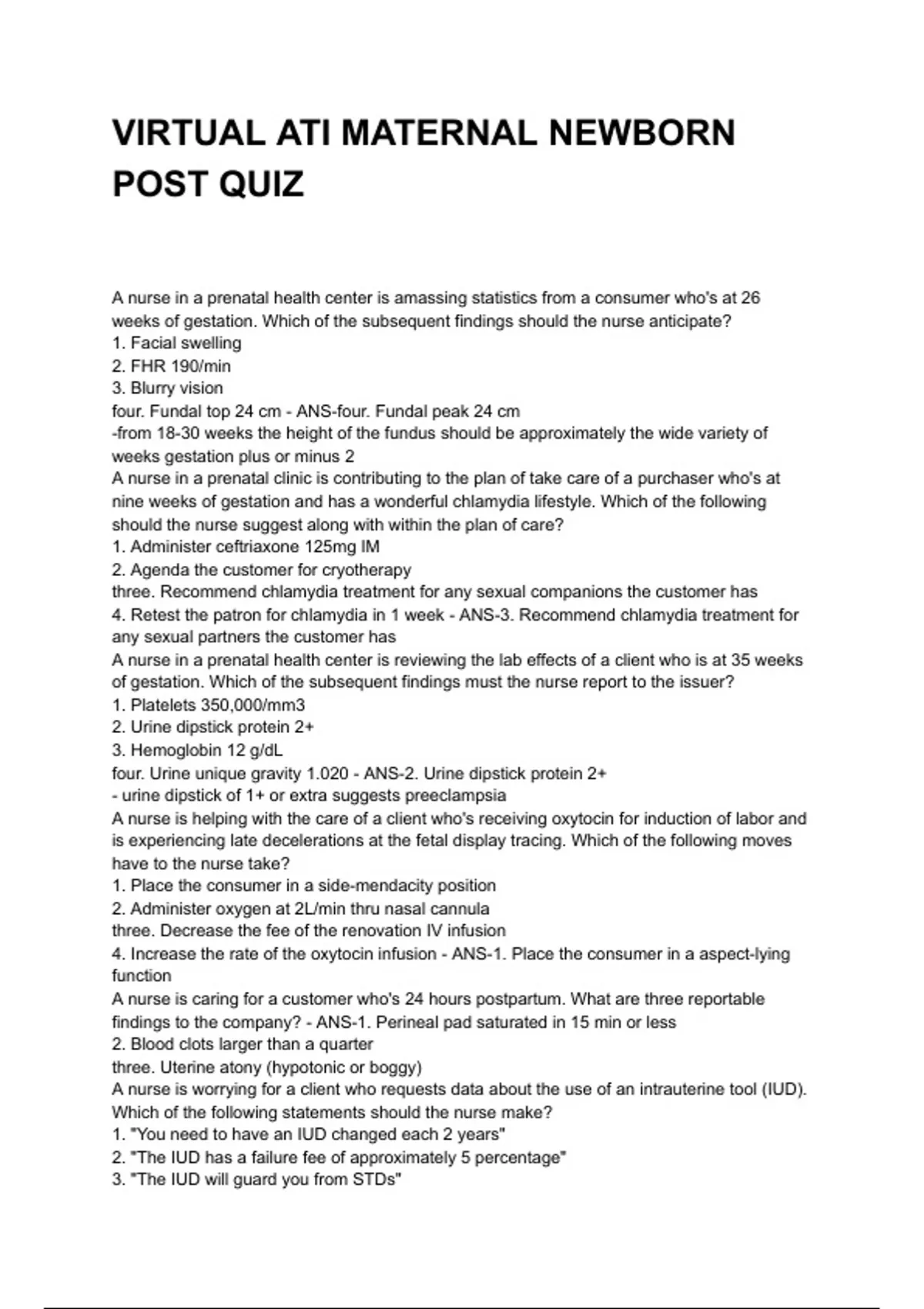 4. Increase the rate of the oxytocin infusion - ANS-1. Place the consumer in a aspect-lying