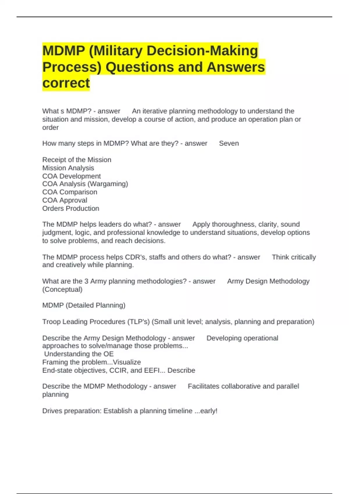 The MDMP helps leaders do what? - answer Apply thoroughness, clarity, sound