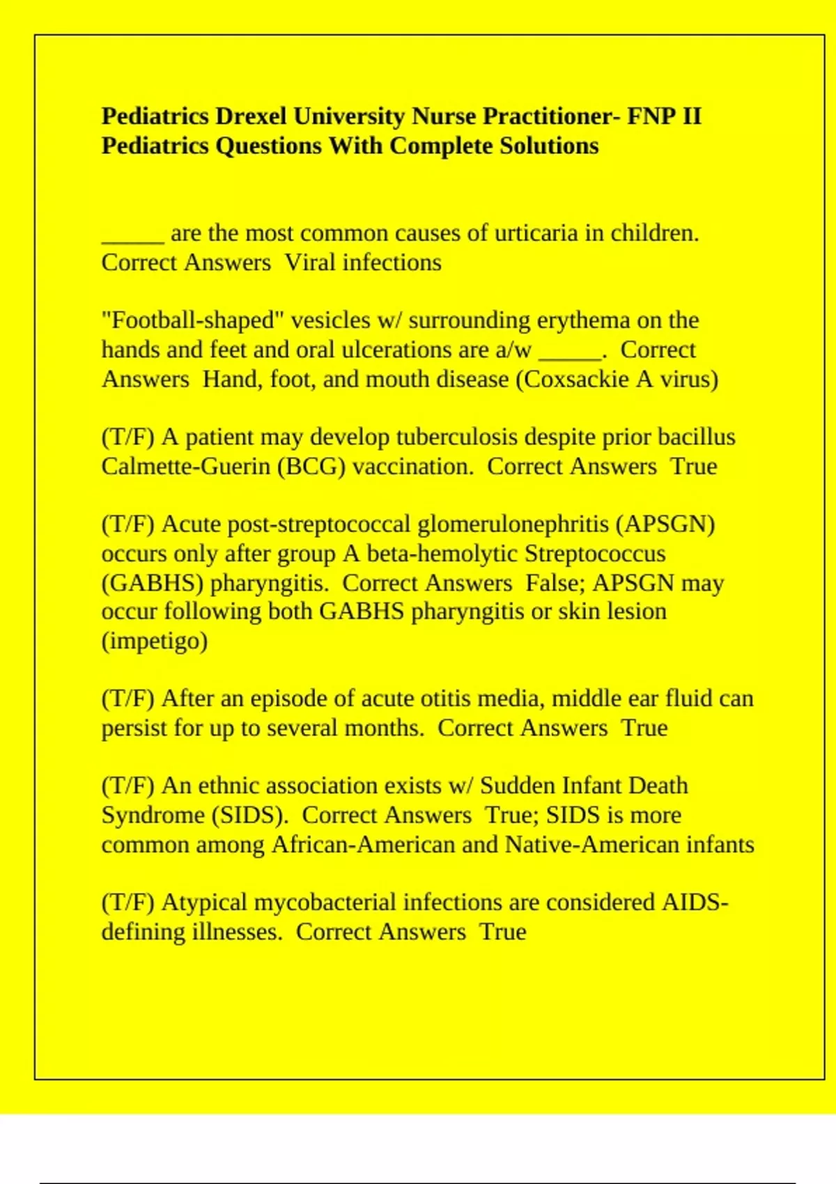 Pediatrics Questions With Complete Solutions