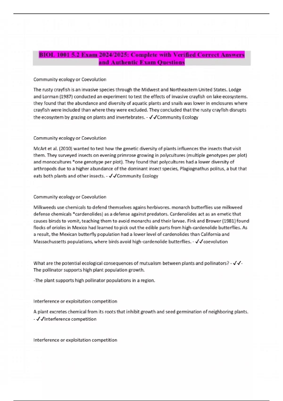 biol 1001 52 exam complete with verifi