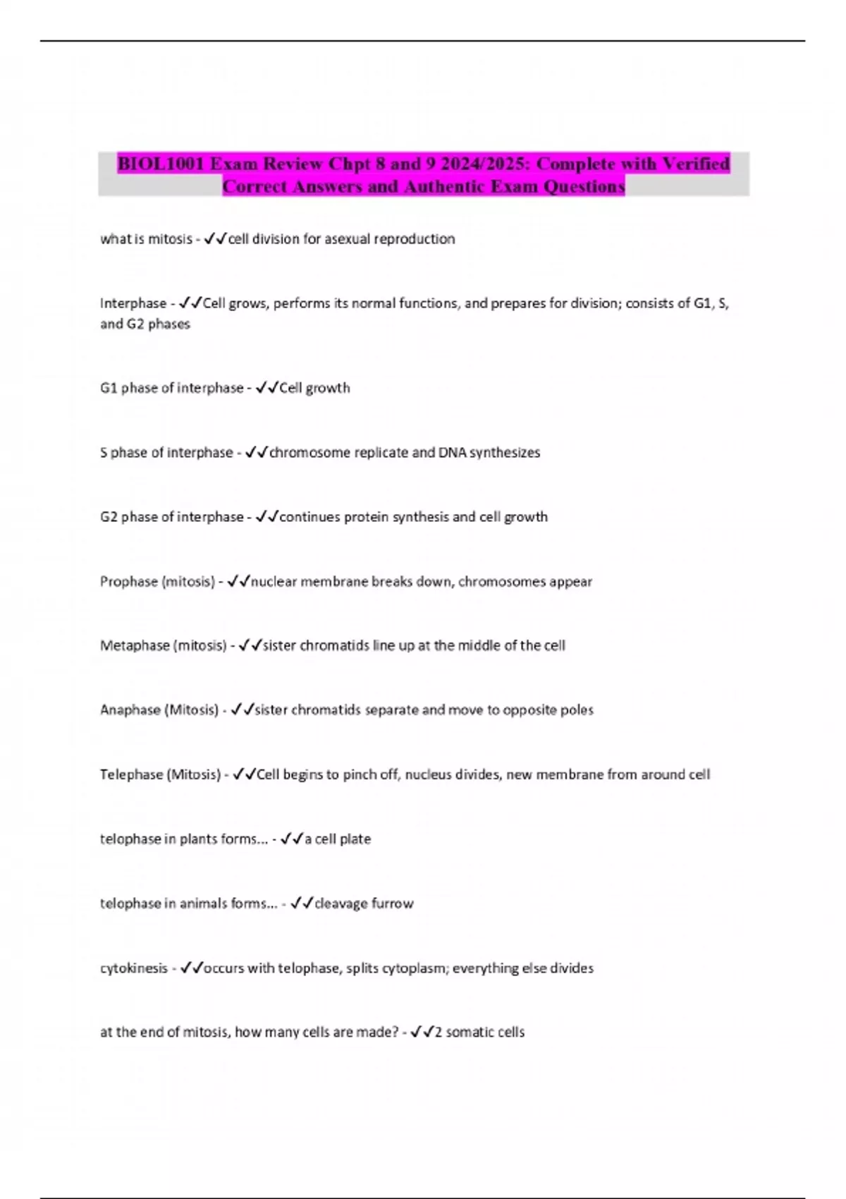 BIOL1001 Exam Review Chpt 8 and 9 2024/2025: Complete with Verified Correct Answers