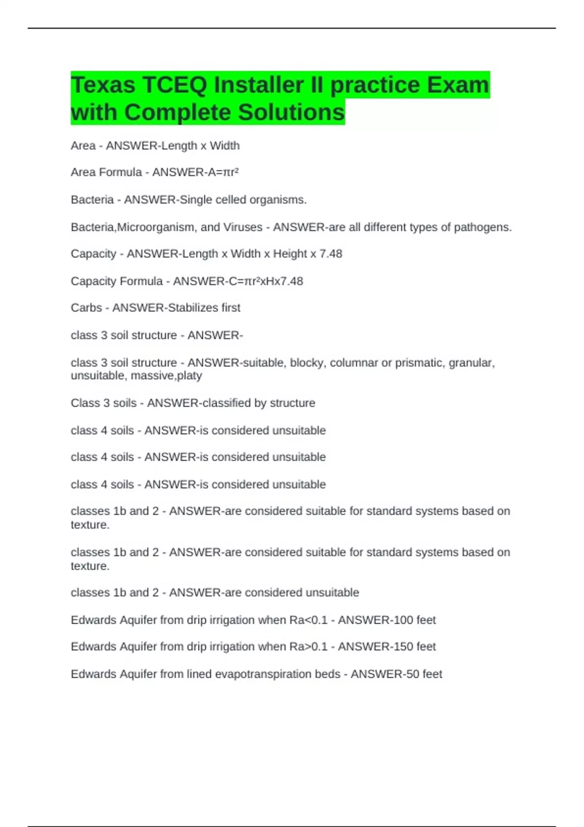 Texas TCEQ Installer II practice Exam with Complete Solutions