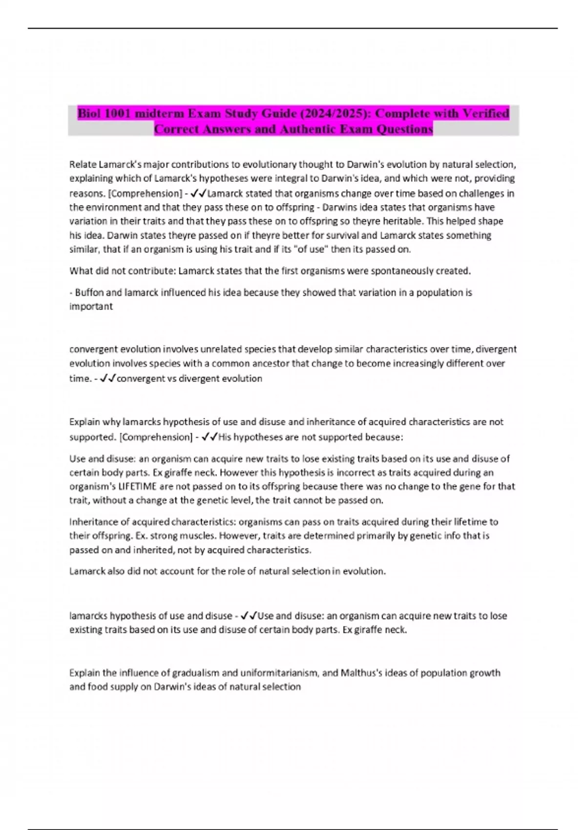 Biol 1001 midterm Exam Study Guide (2024/2025): Complete with Verified Correct Answers