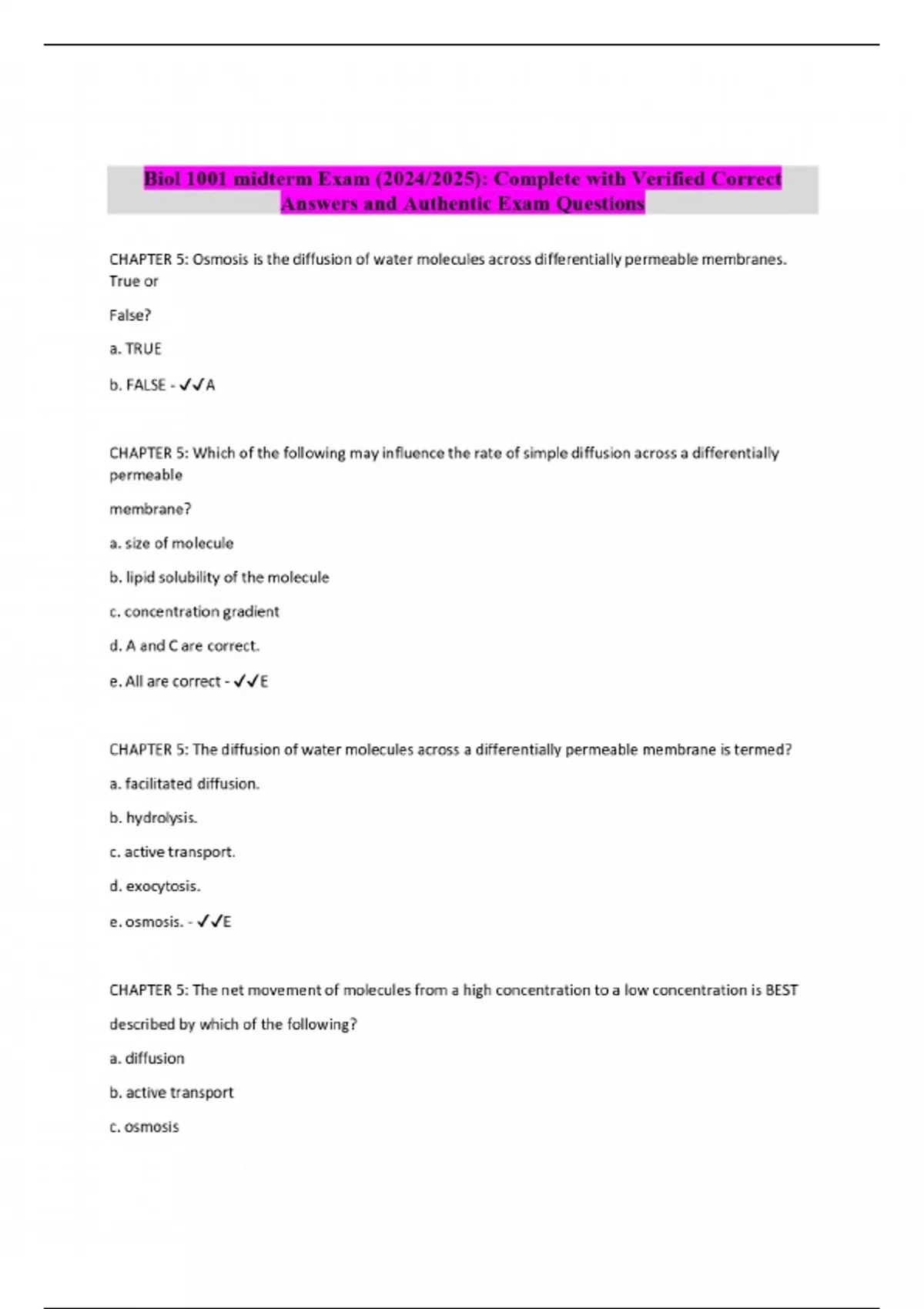 Biol 1001 midterm Exam (2024/2025): Complete with Verified Correct Answers