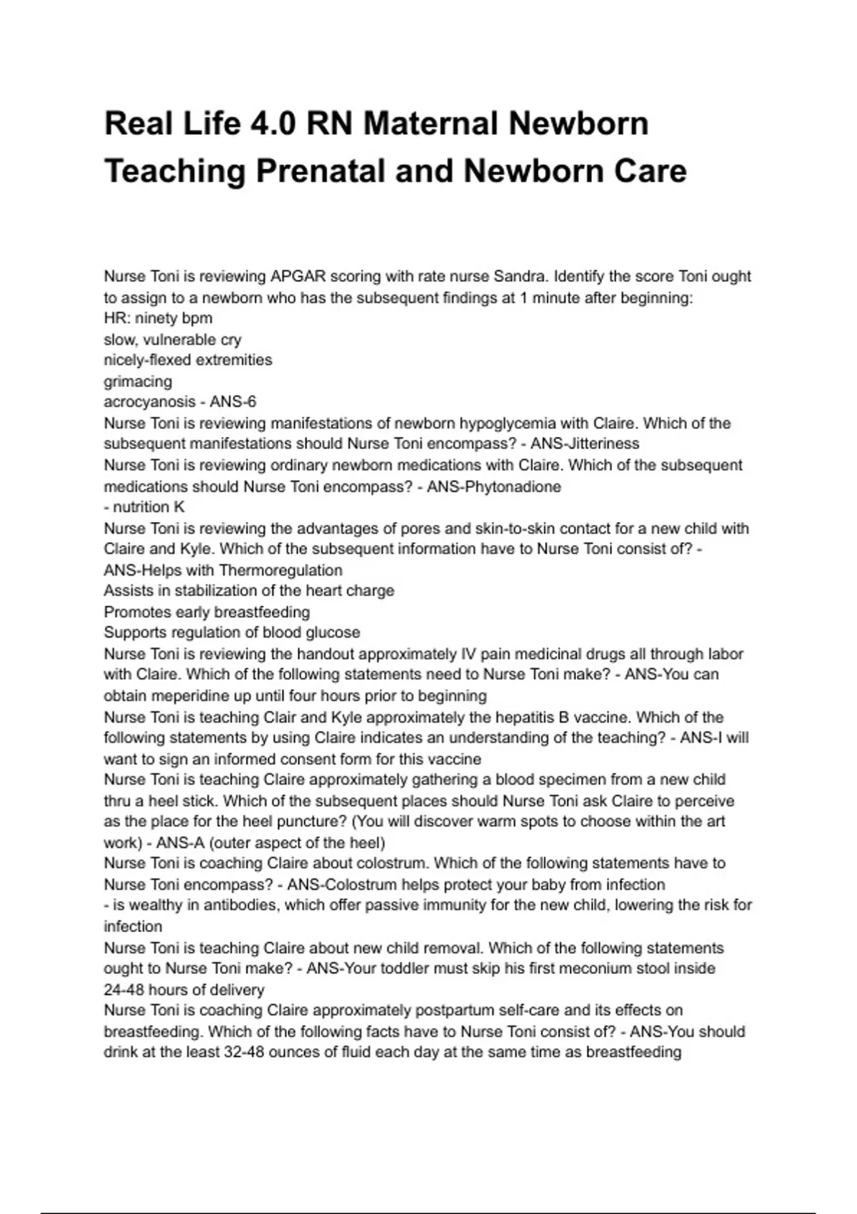 Claire and Kyle. Which of the subsequent information have to Nurse Toni consist of? -