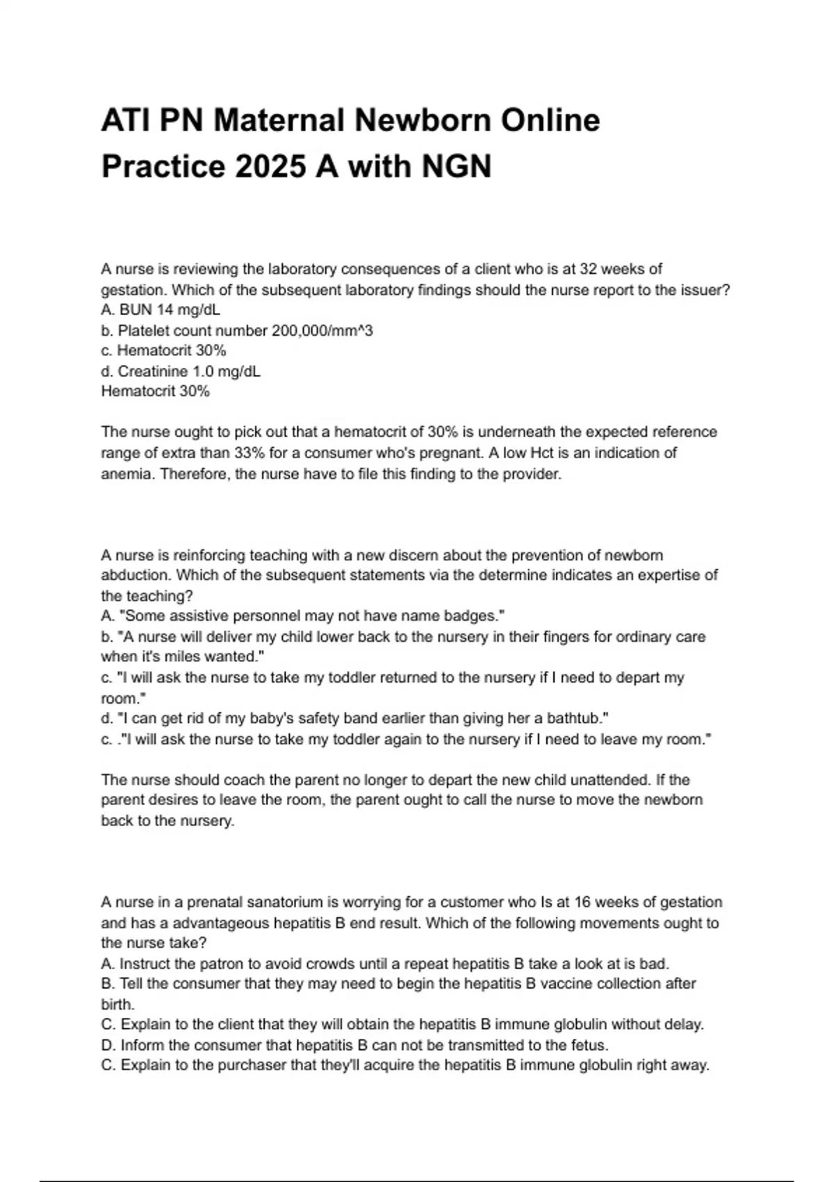 immune globulin to lower the danger of transmission to the fetus. The nurse have to also
