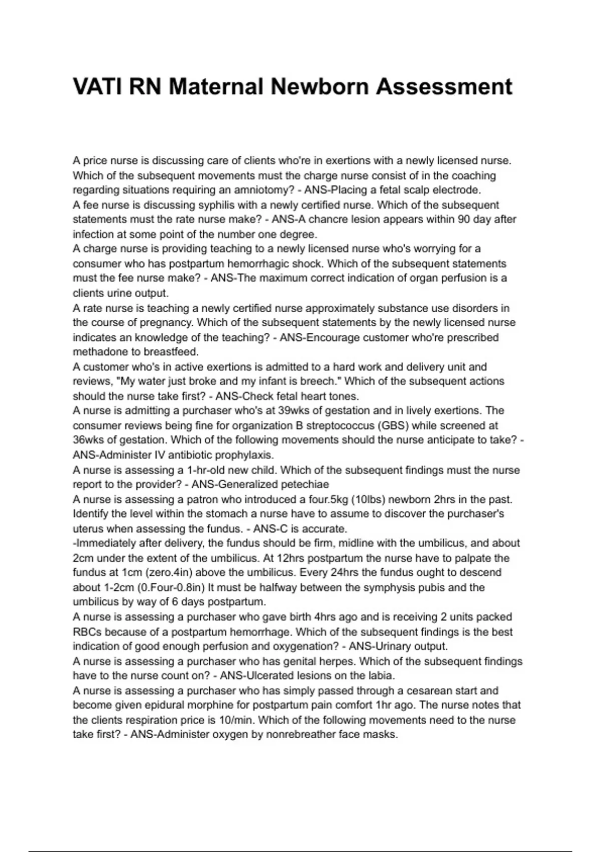 actions have to the nurse take? - ANS-Initiate and infusion of oxytocin.