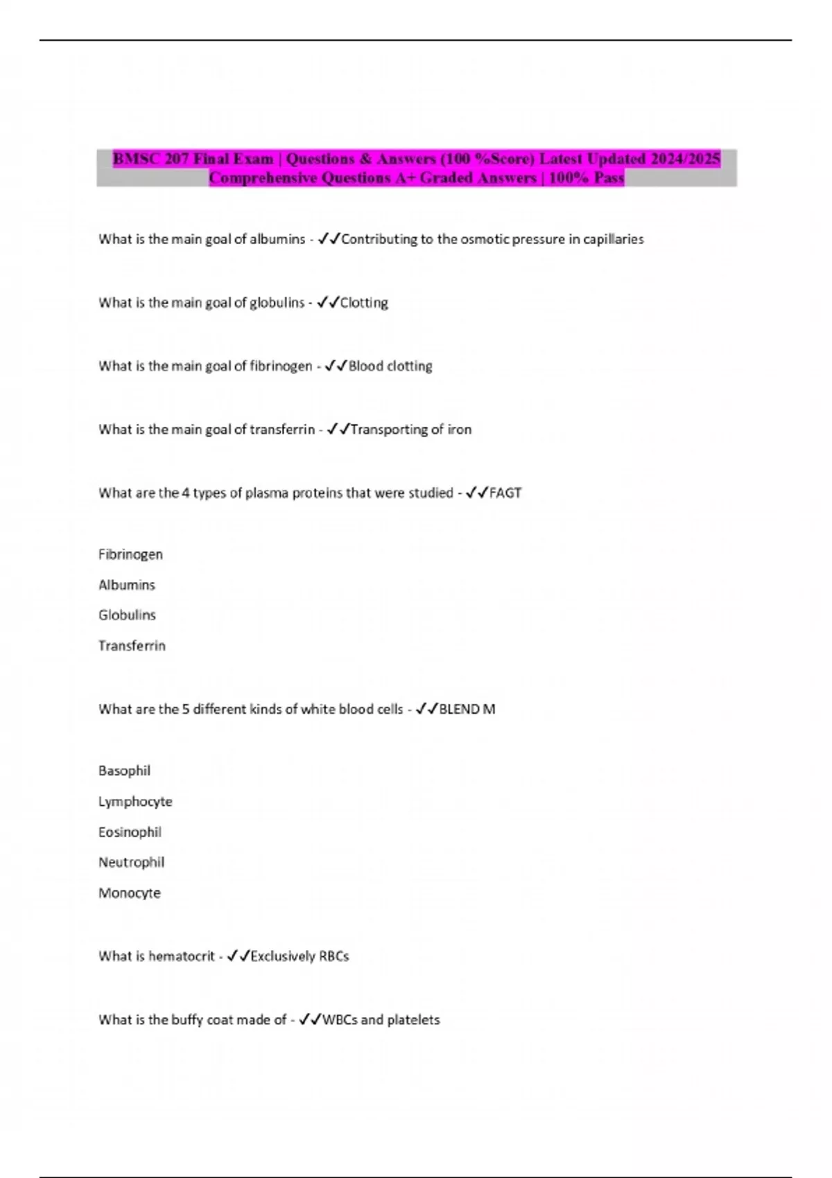 BMSC 207 Final Exam | Questions & Answers (100 %Score