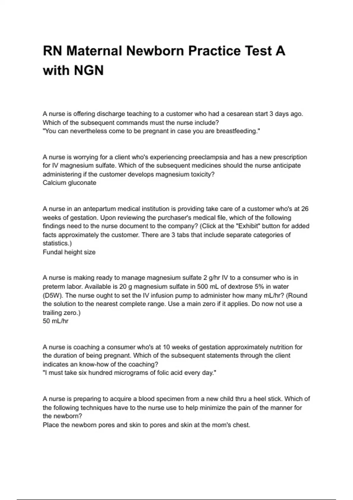 for IV magnesium sulfate. Which of the subsequent medicines should the nurse anticipate