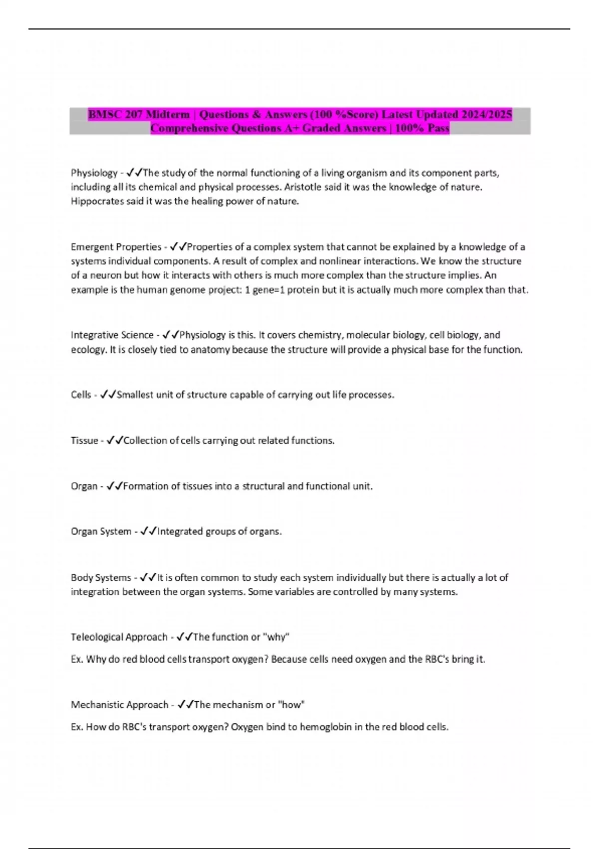 BMSC 207 Midterm | Questions & Answers
