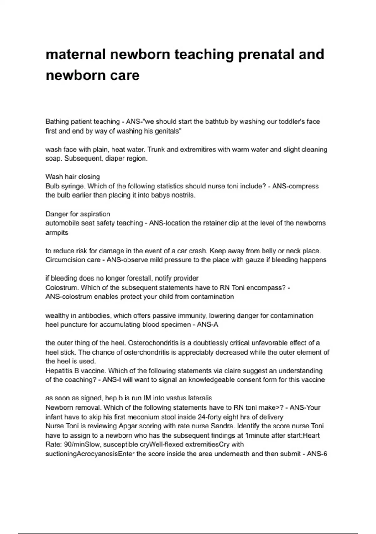Newborn removal. Which of the following statements have to RN toni make>? - ANS-Your