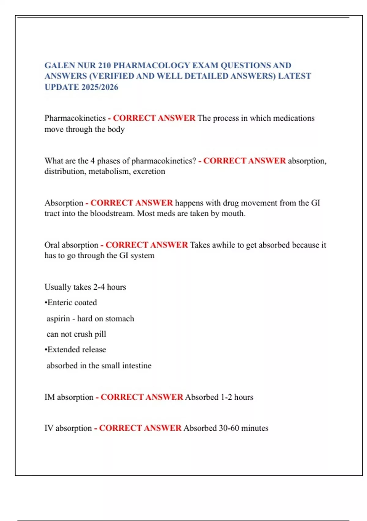 GALEN NUR 210 PHARMACOLOGY EXAM QUESTIONS AND