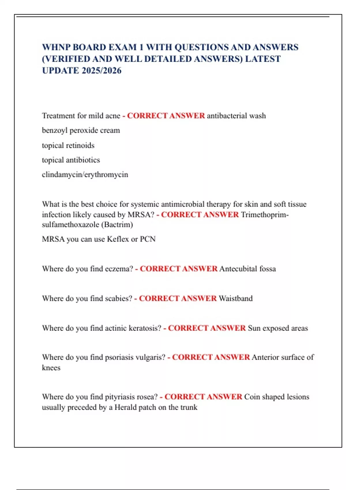 WHNP BOARD EXAM 1 WITH QUESTIONS AND ANSWERS