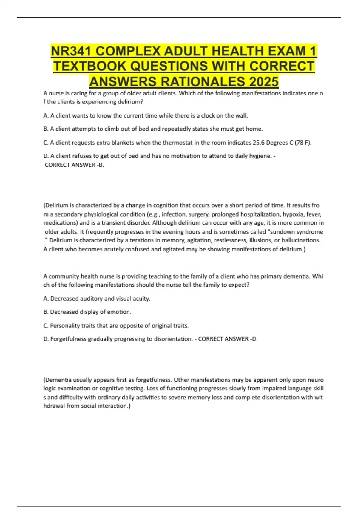 NR341 COMPLEX ADULT HEALTH EXAM 1