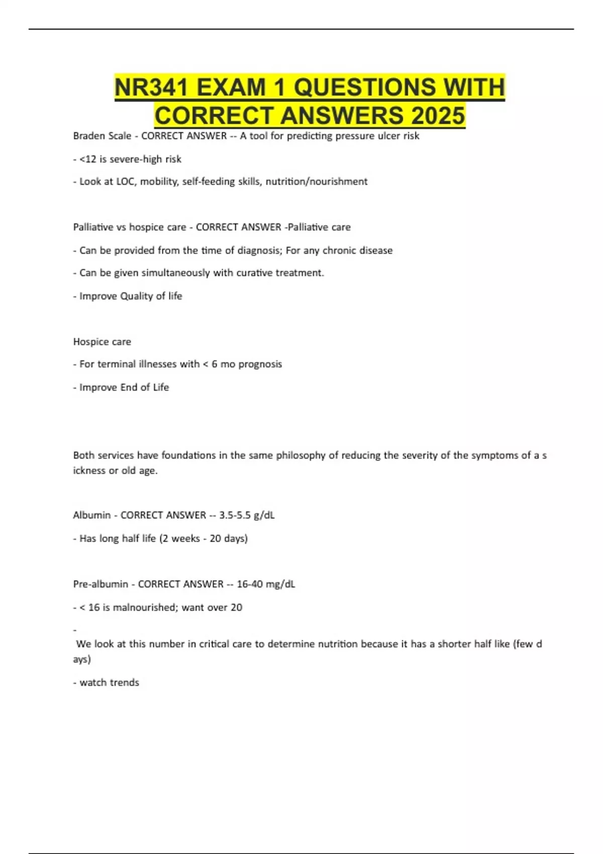 NR341 EXAM 1 QUESTIONS WITH
