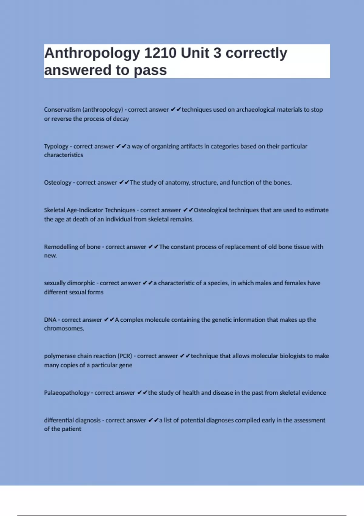Palaeopathology - correct answer ✔✔the study of health and disease in the past from skeletal evidence