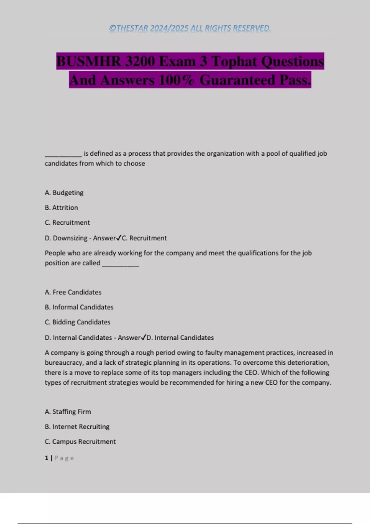 D. Internal Candidates - Answer✔D. Internal Candidates