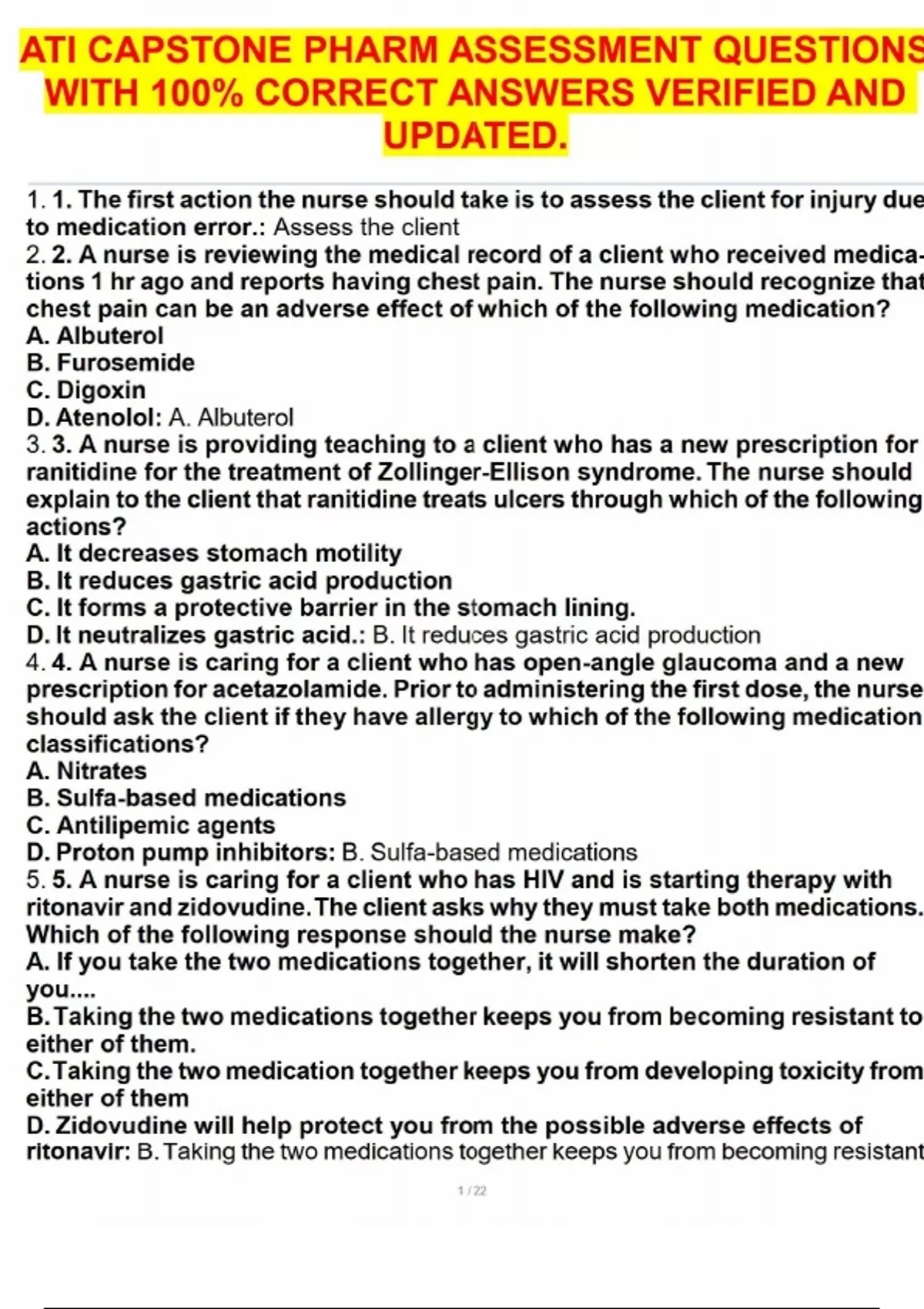 ATI CAPSTONE PHARM ASSESSMENT QUESTIONS WITH 100% CORRECT ANSWERS VERIFIED AND UPDATED.ATI CAPSTONE PHARM ASSESSMENT QUESTIONS WITH 100% CORRECT ANSWERS VERIFIED AND UPDATED.ATI CAPSTONE PHARM ASSESSMENT QUESTIONS WITH 100% CORRECT ANSWERS VERIFIED AND UPDATED.ATI CAPSTONE PHARM ASSESSMENT QUESTIONS WITH 100% CORRECT ANSWERS VERIFIED AND UPDATED.ATI CAPSTONE PHARM ASSESSMENT QUESTIONS WITH 100% CORRECT ANSWERS VERIFIED AND UPDATED.