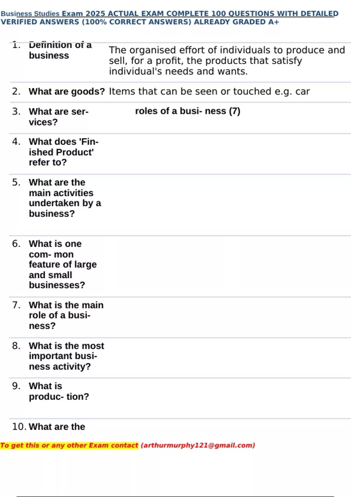 Business Studies Exam 2025 ACTUAL EXAM COMPLETE 100 QUESTIONS WITH DETAILED