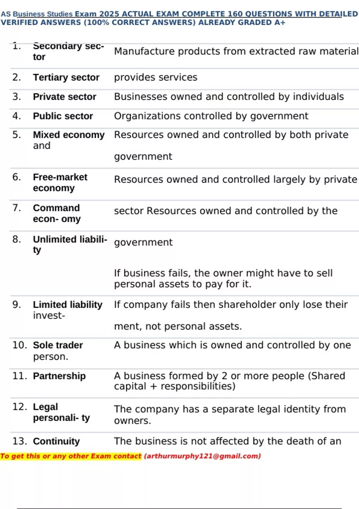AS Business Studies Exam 2025 ACTUAL EXAM COMPLETE 160 QUESTIONS WITH DETAILED VERIFIED ANSWERS (100% CORRECT ANSWERS) ALREADY GRADED A+