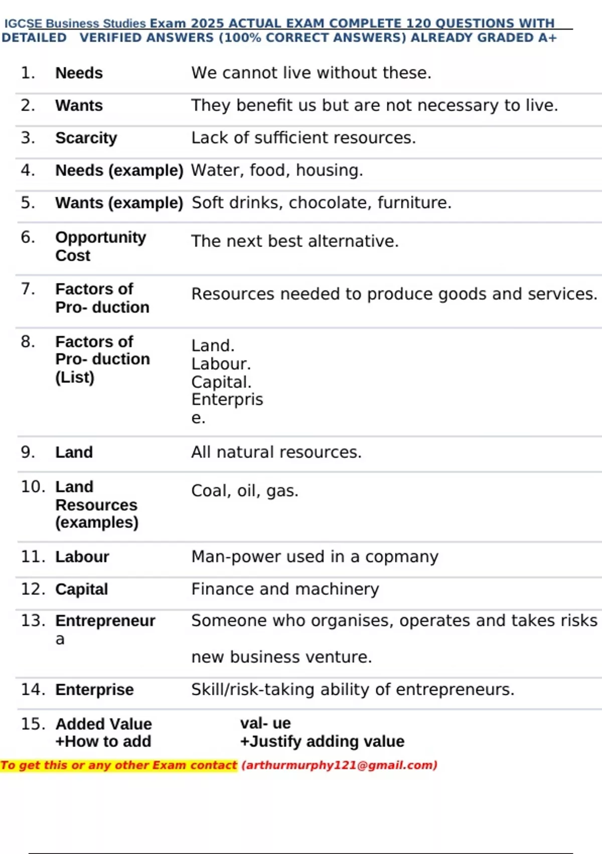 IGCSE Business Studies Exam 2025 ACTUAL EXAM COMPLETE 120 QUESTIONS WITH