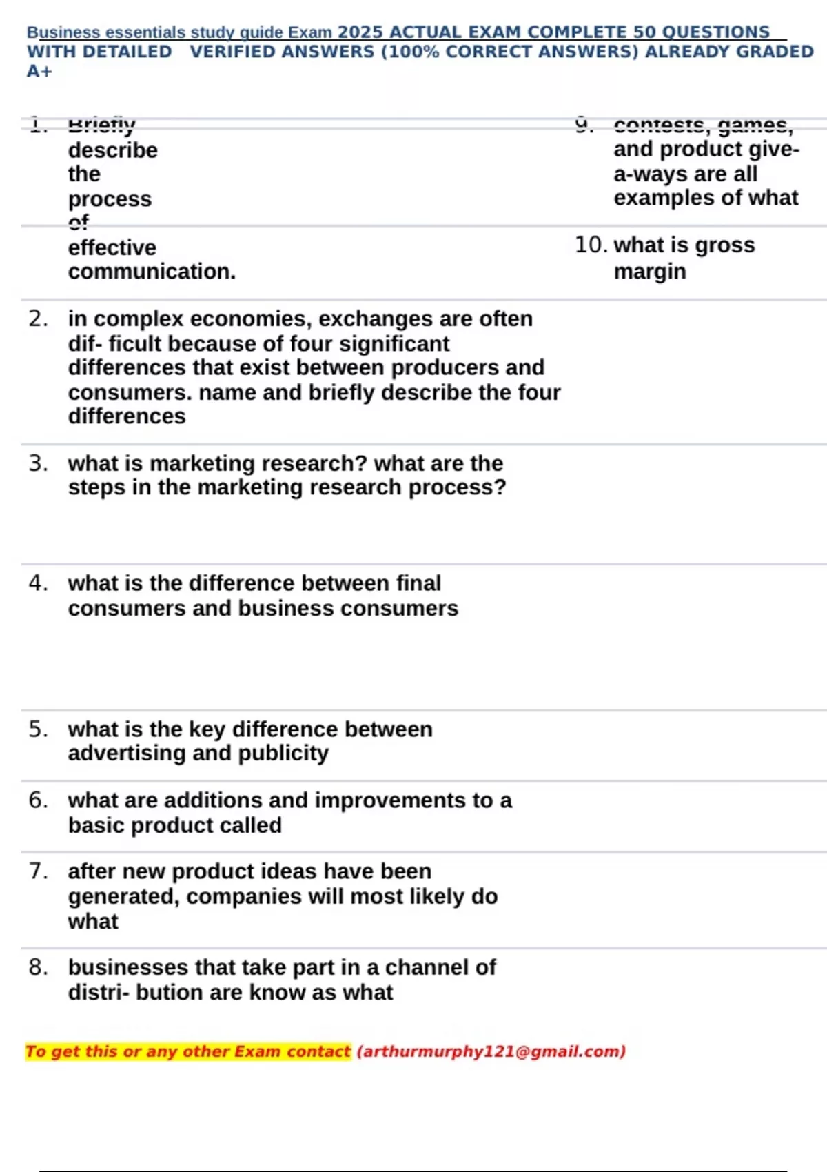 Business essentials study guide Exam 2025 ACTUAL EXAM COMPLETE 50 QUESTIONS