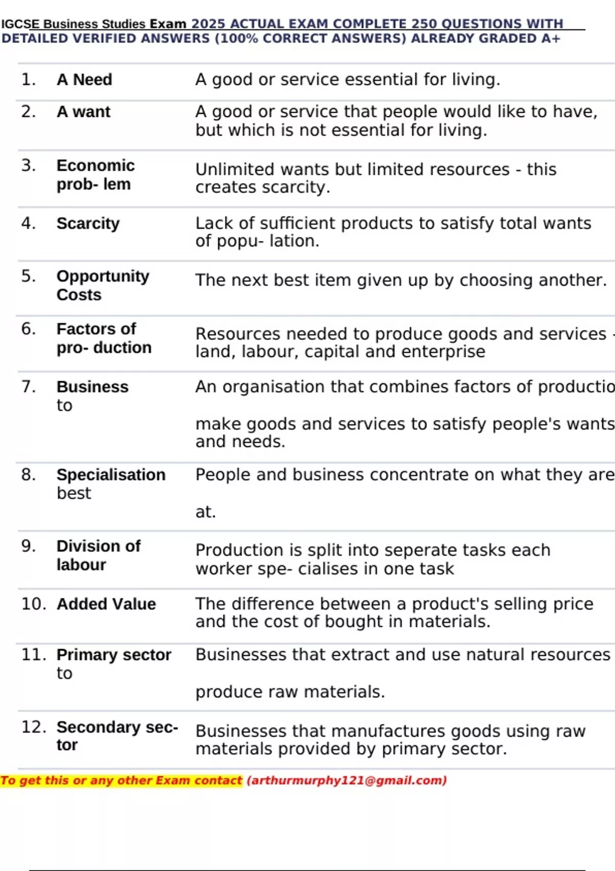 ,IGCSE Business Studies Exam 2025 ACTUAL EXAM COMPLETE 250 QUESTIONS WITH