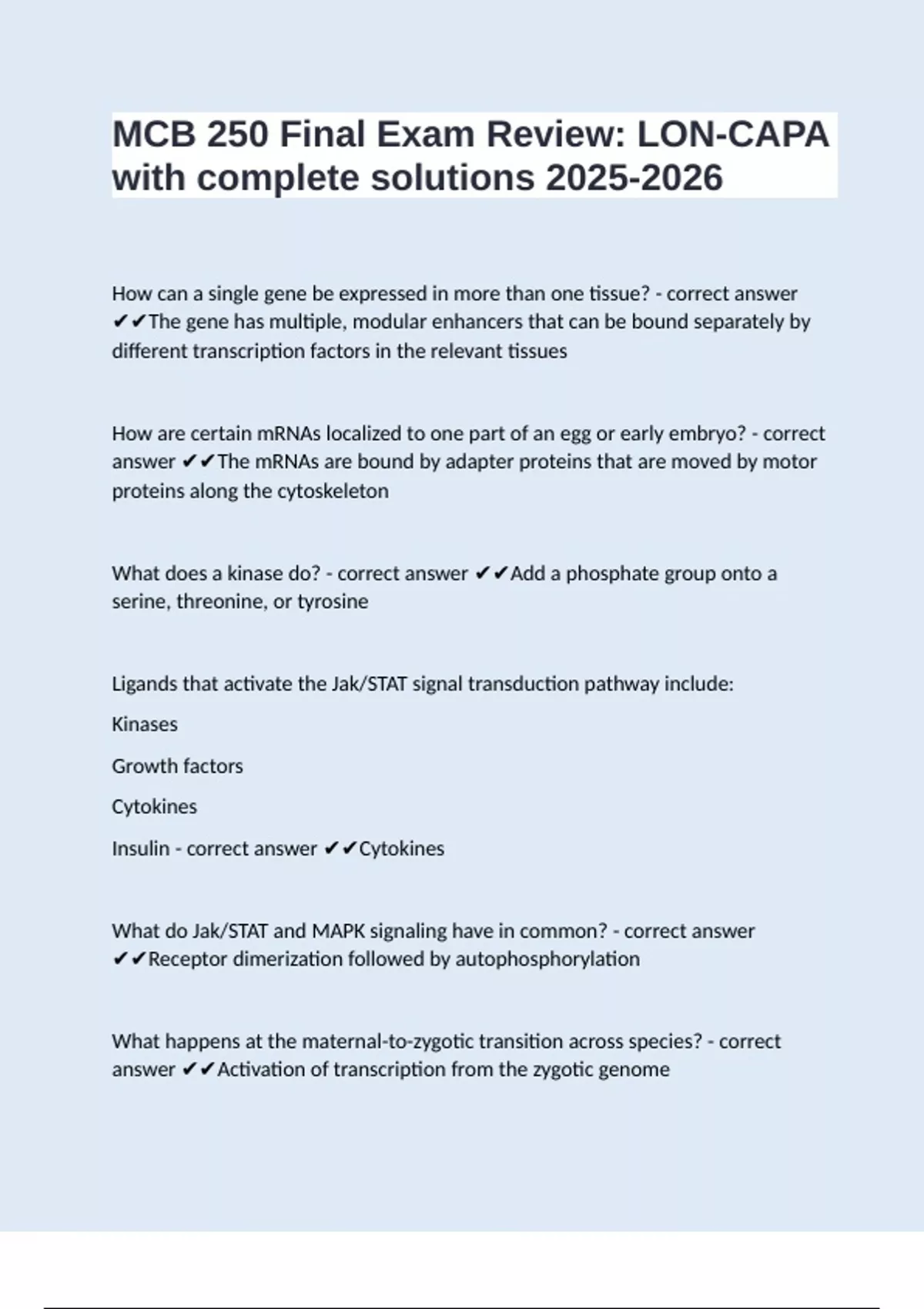 MCB 250 Final Exam Review: LON-CAPA with complete solutions