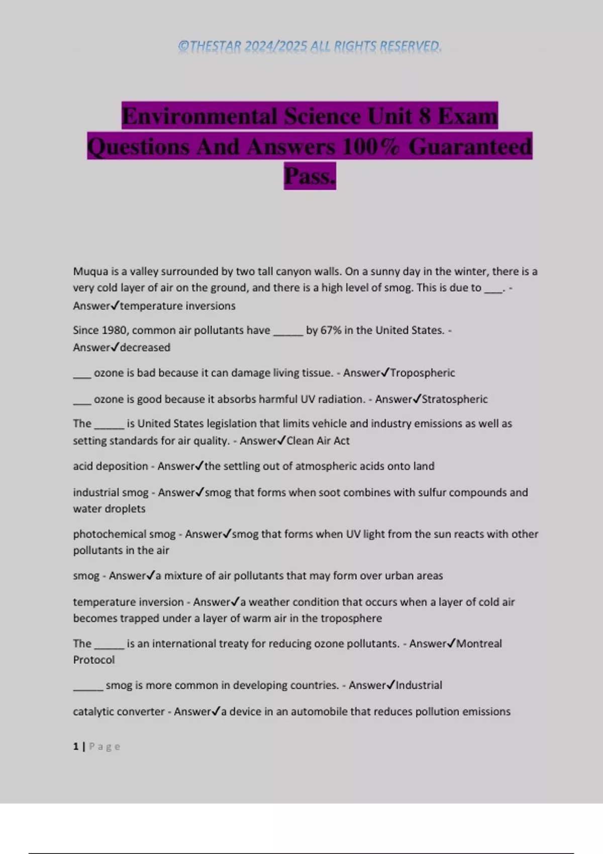 The _____ is an international treaty for reducing ozone pollutants. - Answer✔Montreal