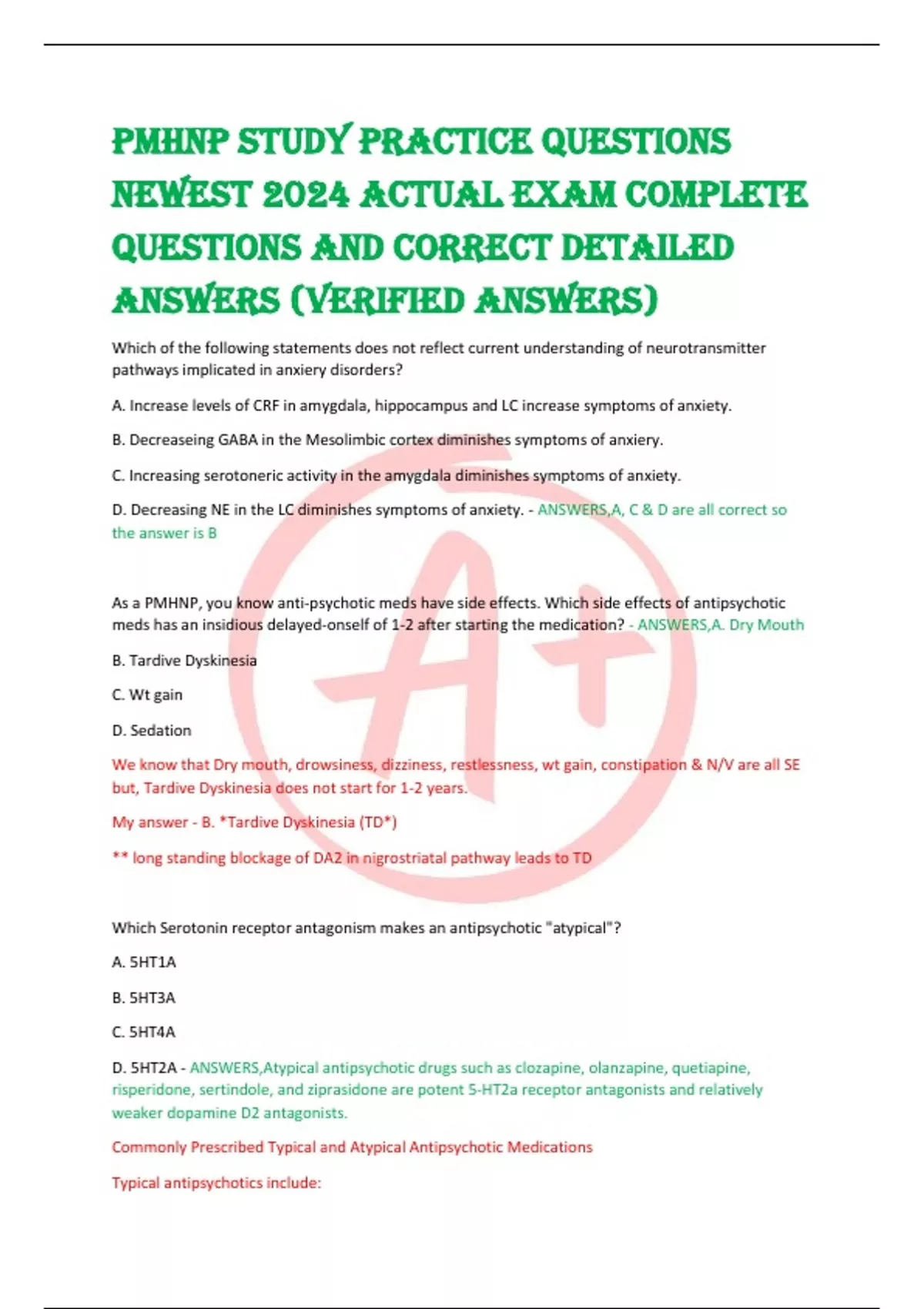 QUESTIONS AND CORRECT DETAILED