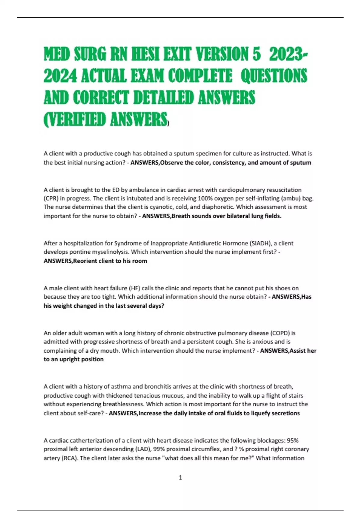 important for the nurse to obtain? - ANSWERS,Breath sounds over bilateral lung fields.