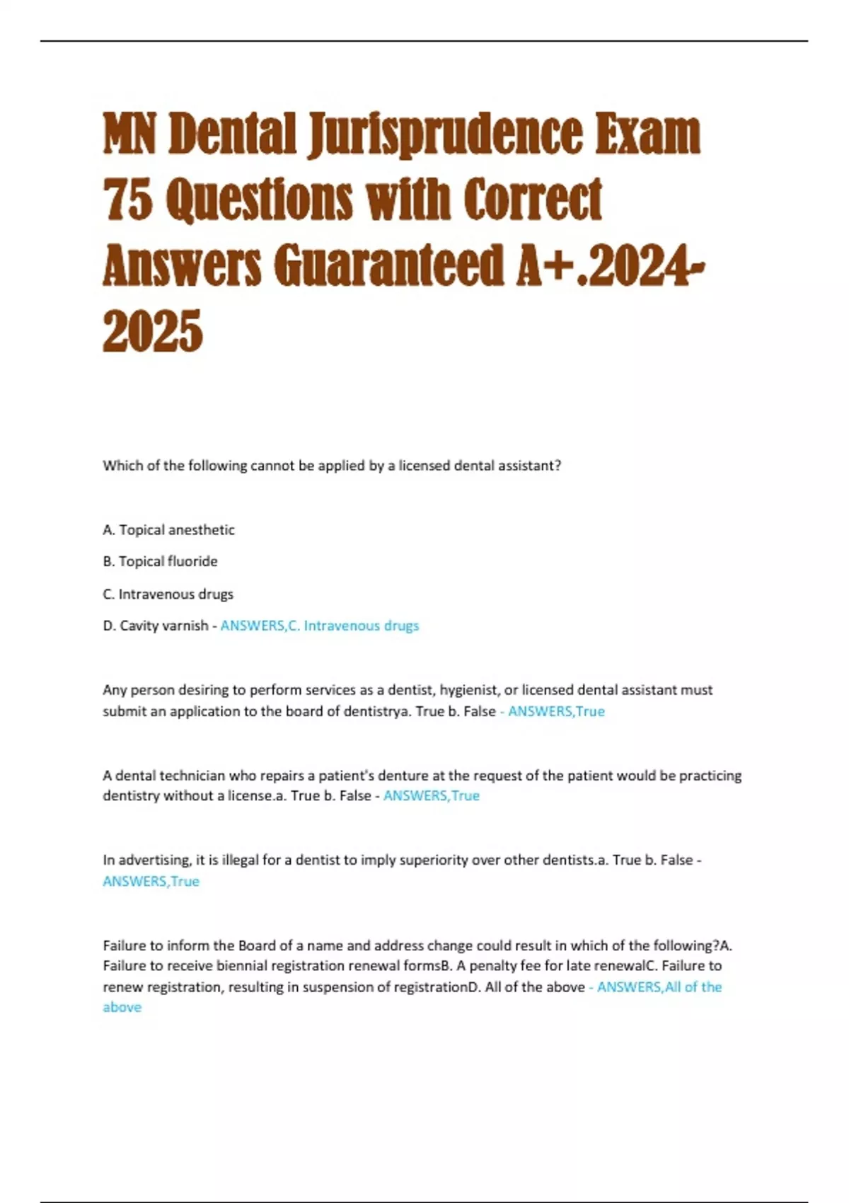 onlyD. None of the above - ANSWERS,None of the above