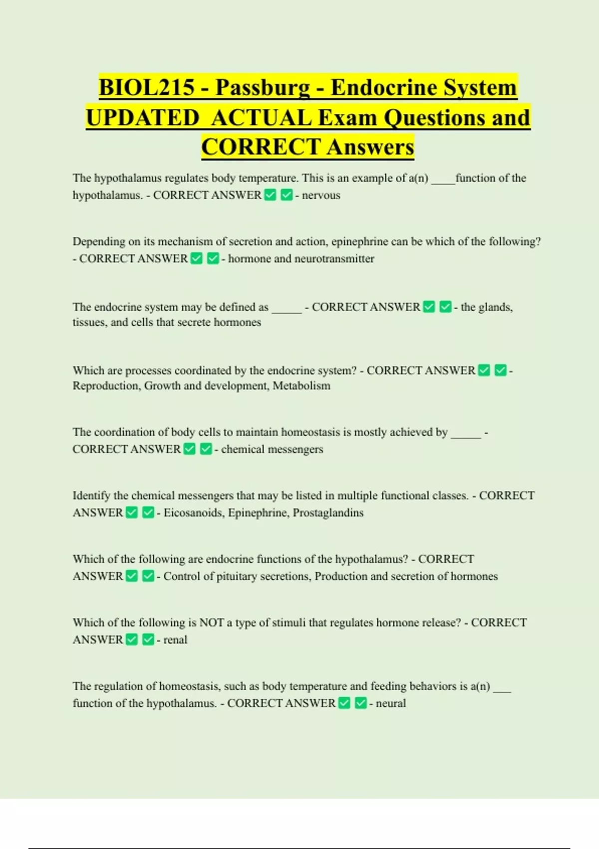 CORRECT ANSWER - chemical messengers