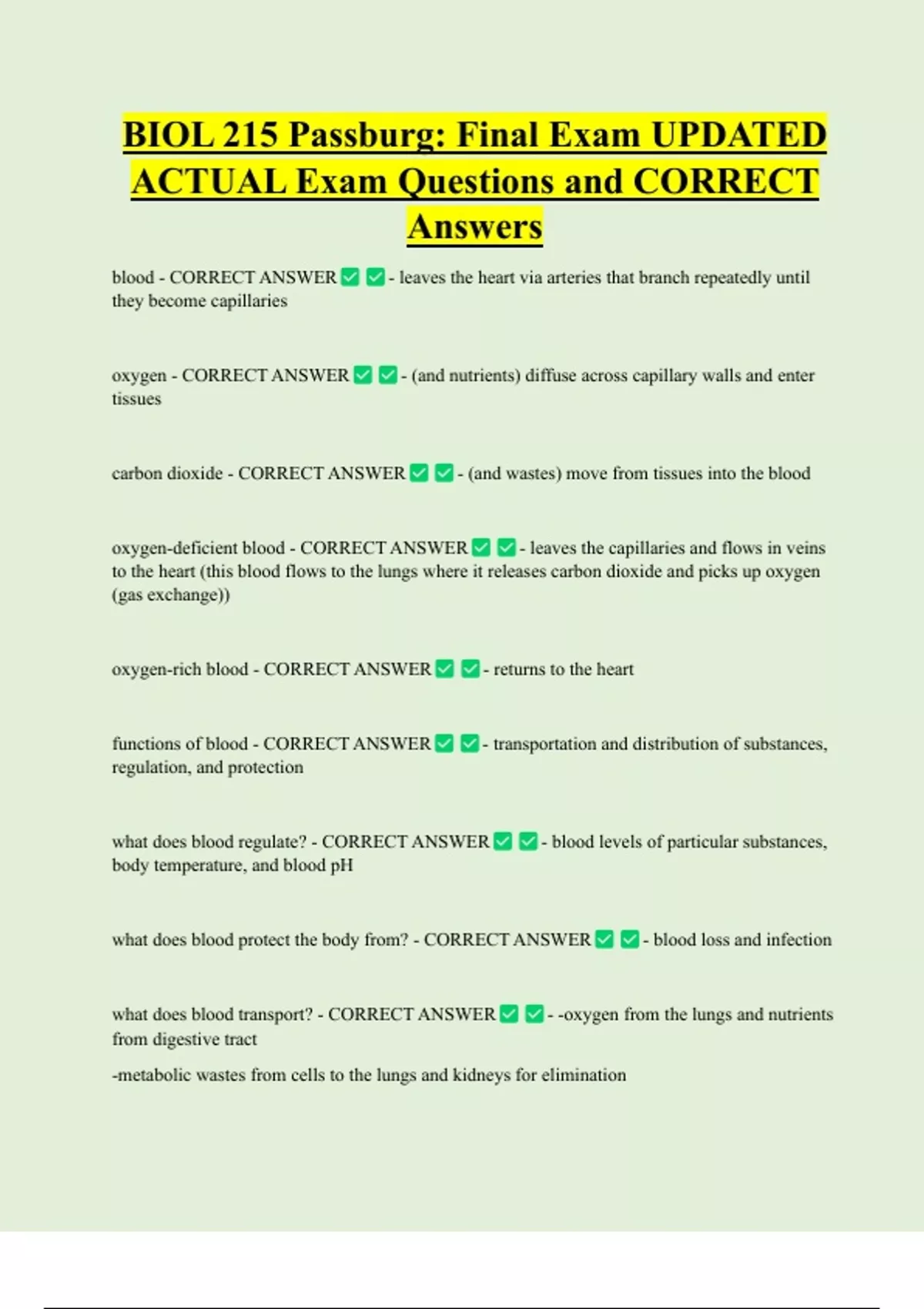 what does blood transport? - CORRECT ANSWER - -oxygen from the lungs and nutrients