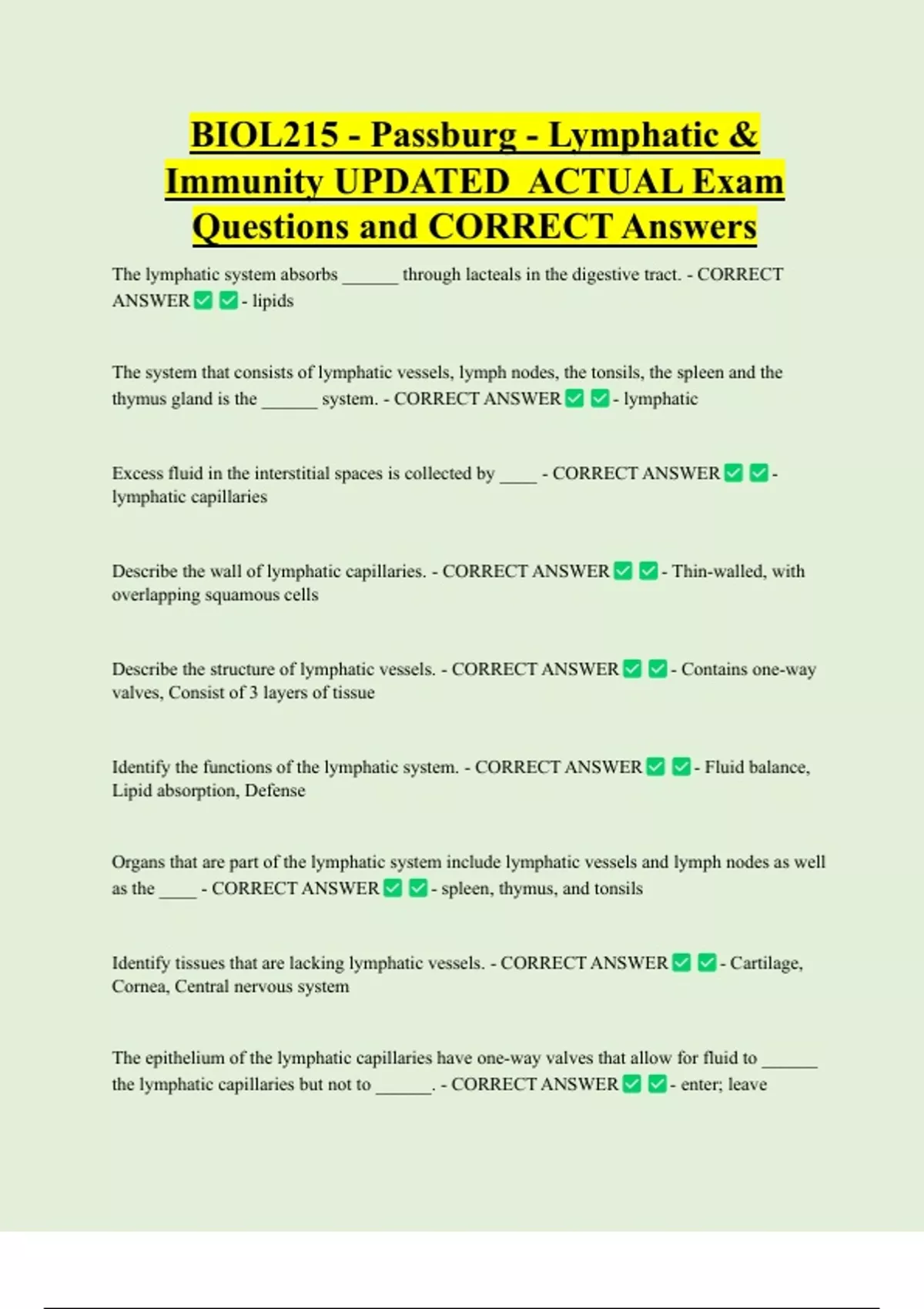 Immunity UPDATED ACTUAL Exam