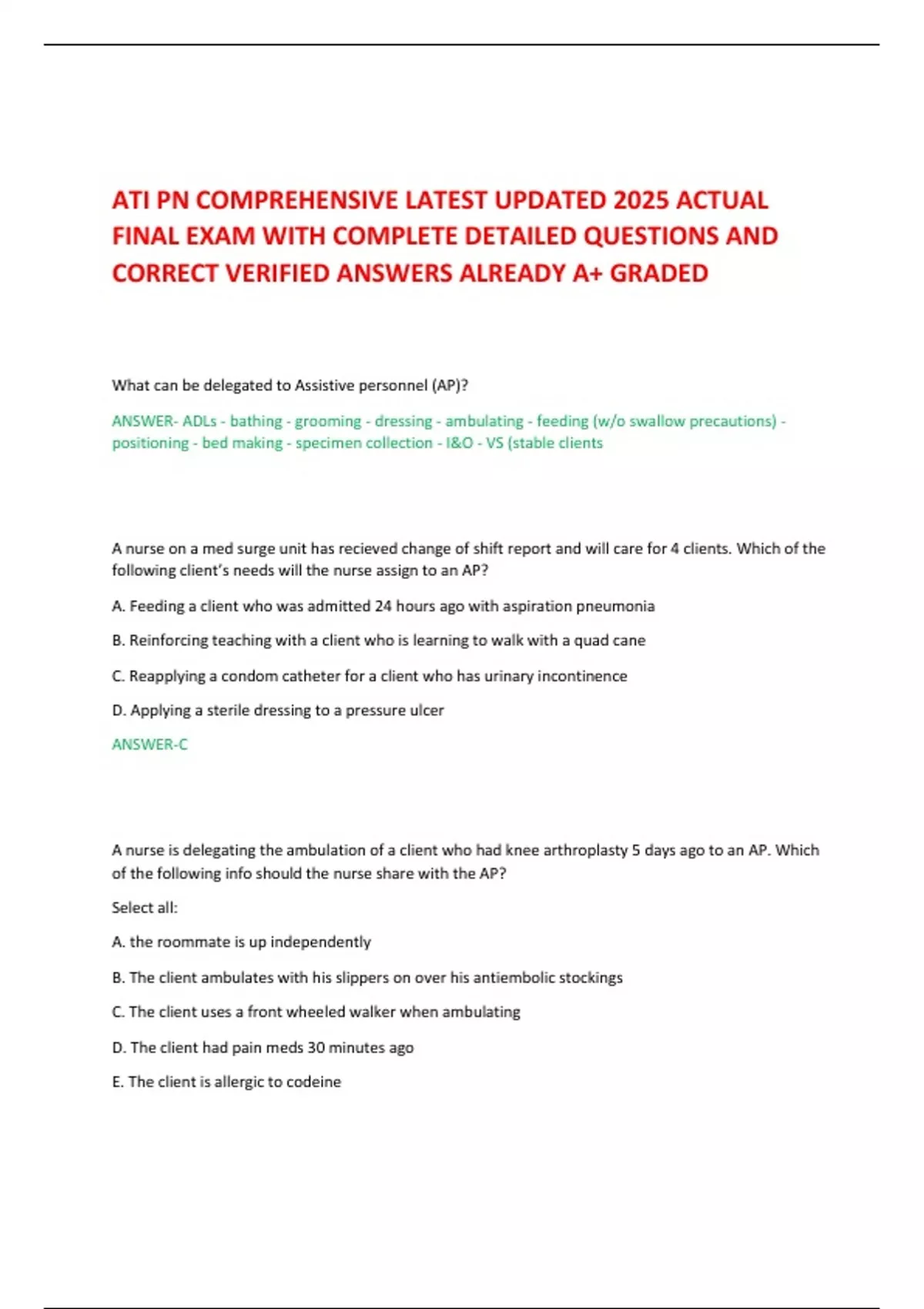 ATI PN COMPREHENSIVE LATEST UPDATED 2025 ACTUAL