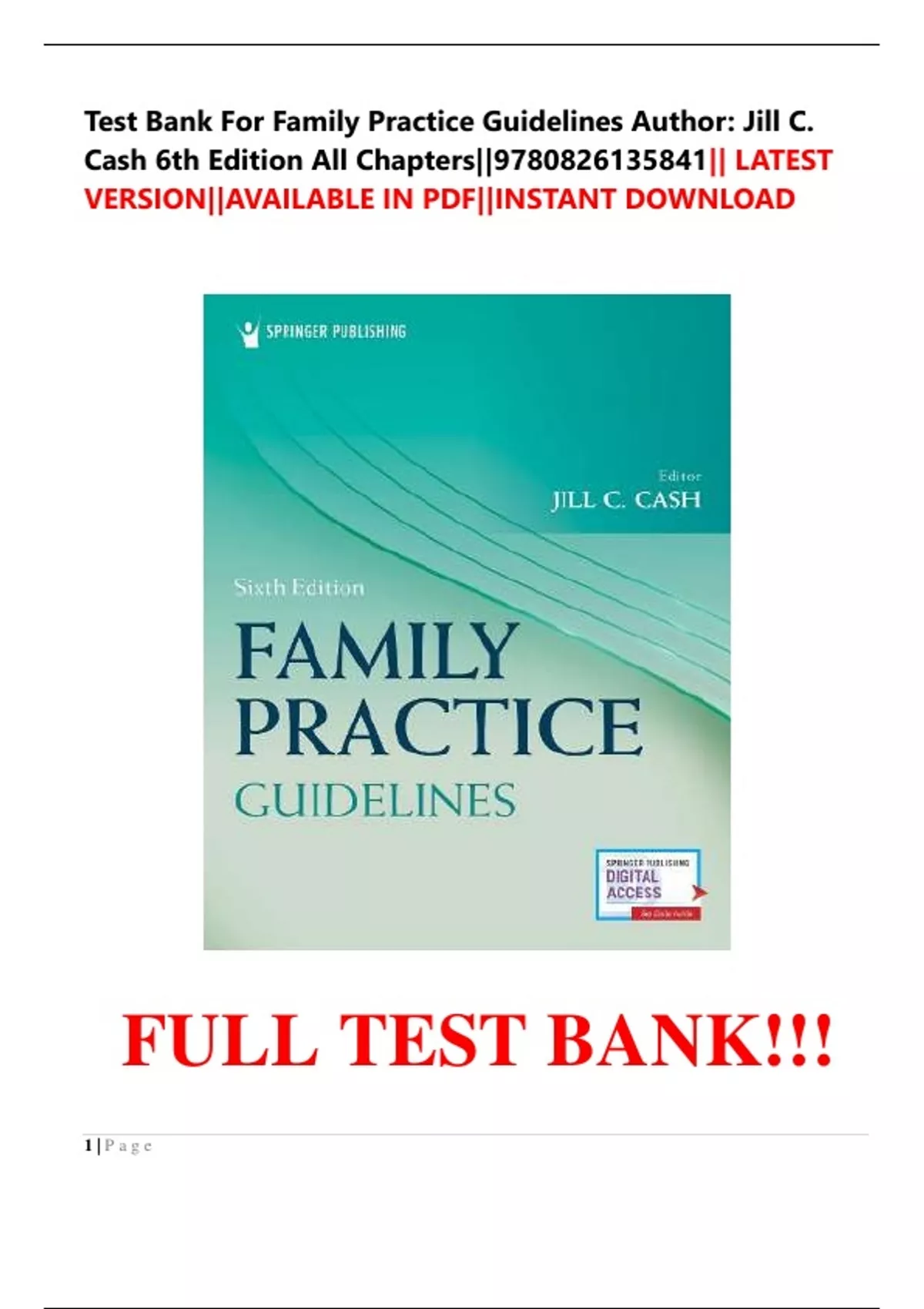 Test Bank For Family Practice Guidelines Author: Jill C. Cash 6th Edition All Chapters||9780826135841|| LATEST VERSION||AVAILABLE IN PDF||INSTANT DOWNLOAD