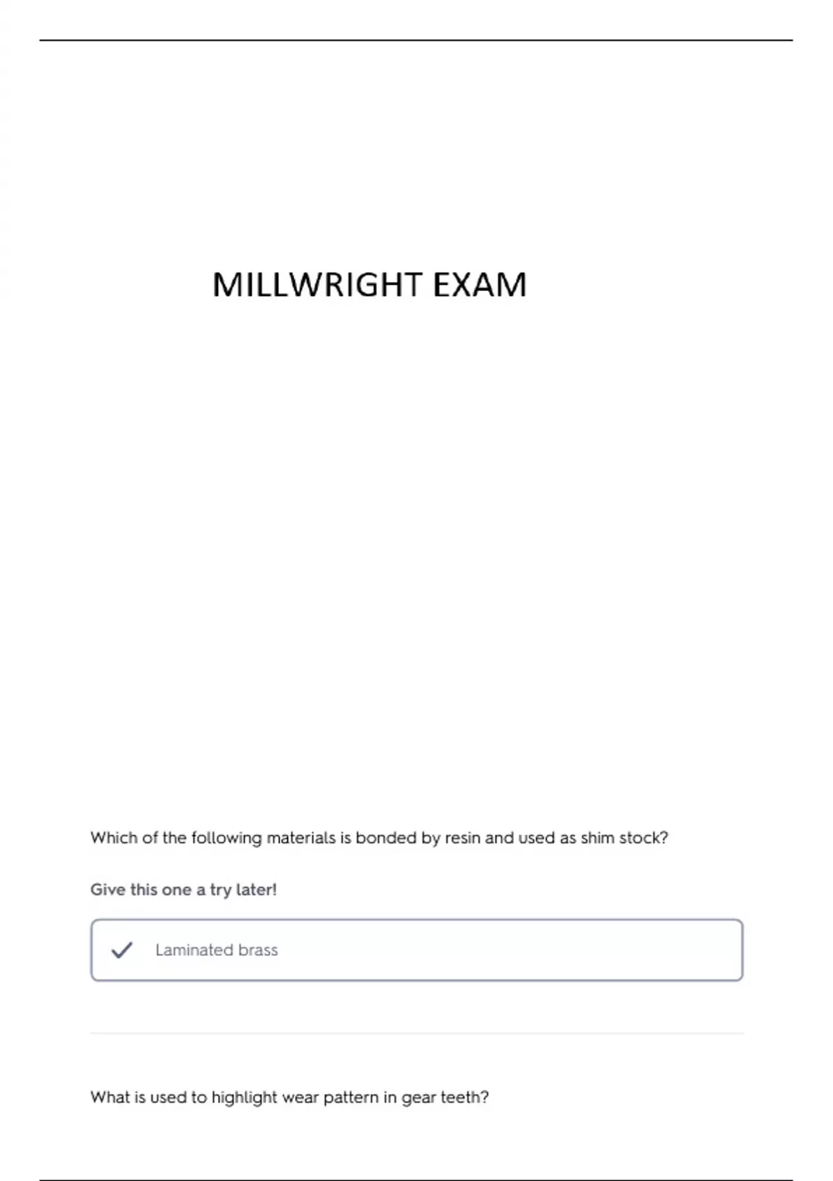 NCCER MILLWRIGHT PRACTICE EXAM QUESTIONS AND ANSWERS