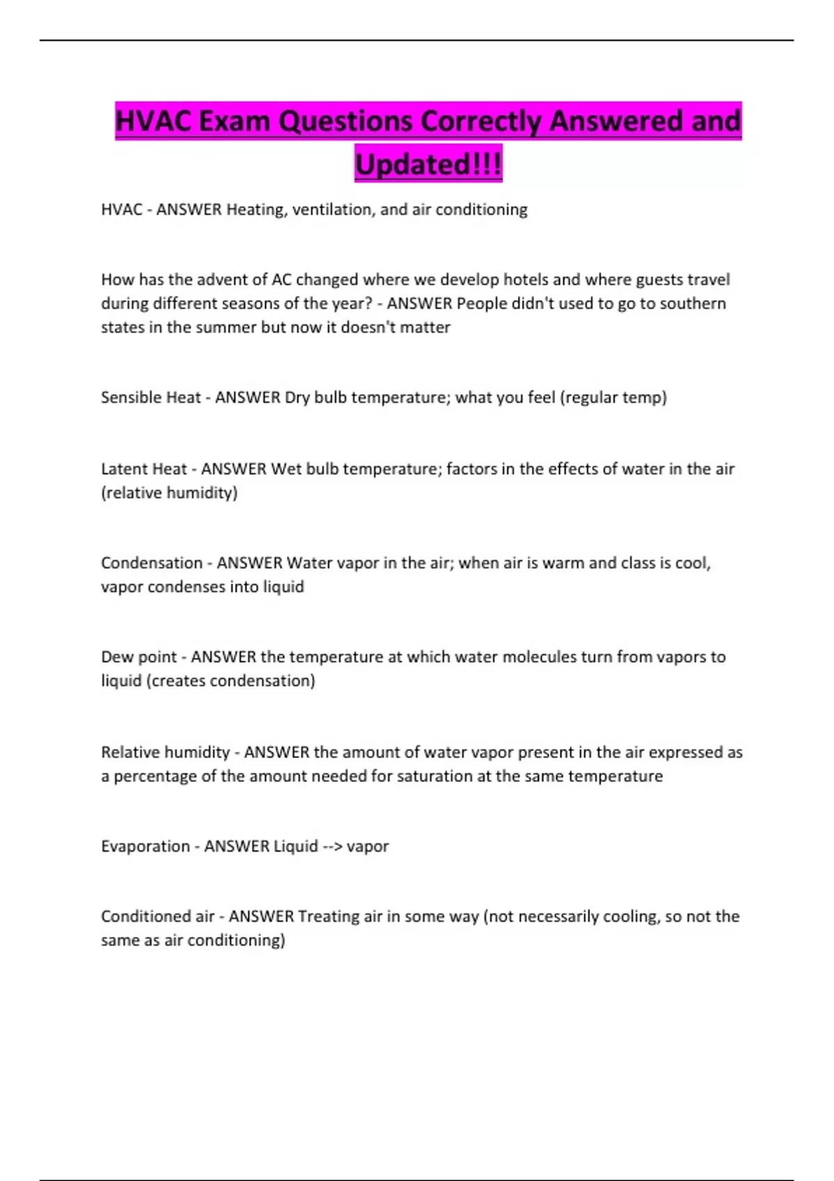 HVAC Exam Questions Correctly Answered and