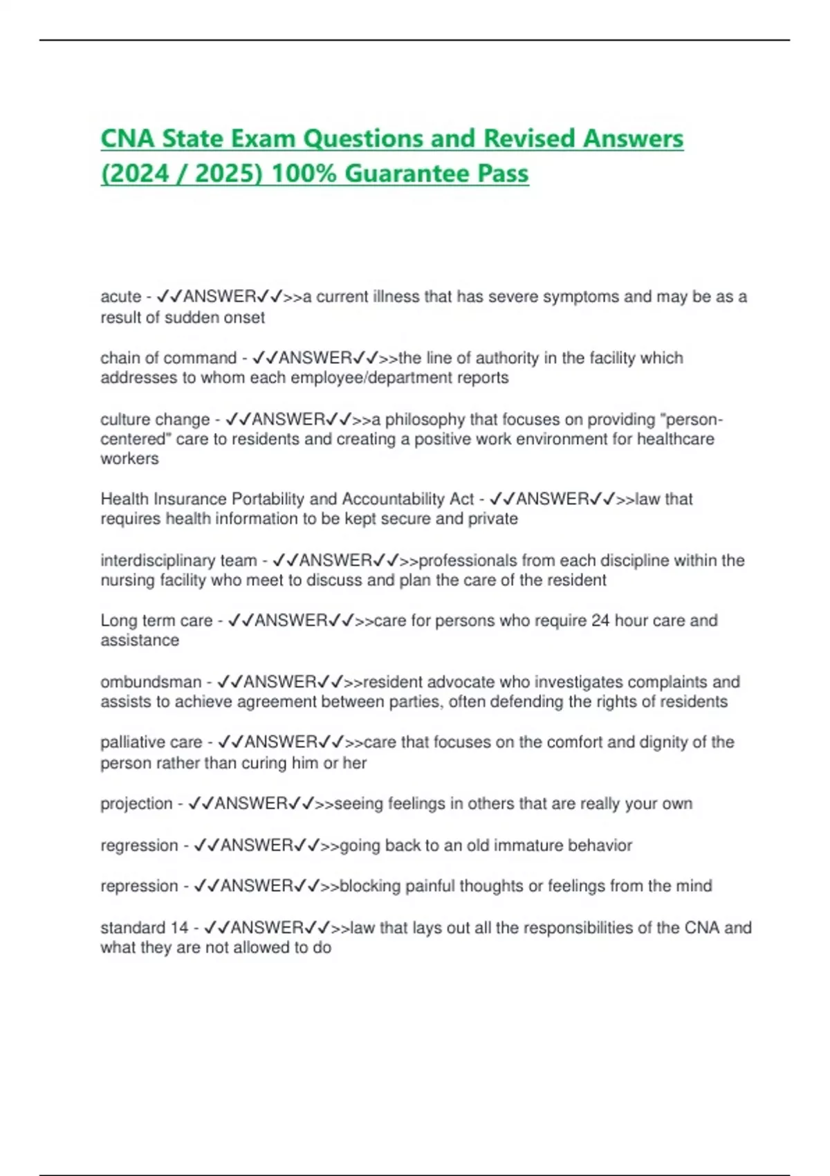 standard 14 - ✔✔ANSWER✔✔>>law that lays out all the responsibilities of the CNA and