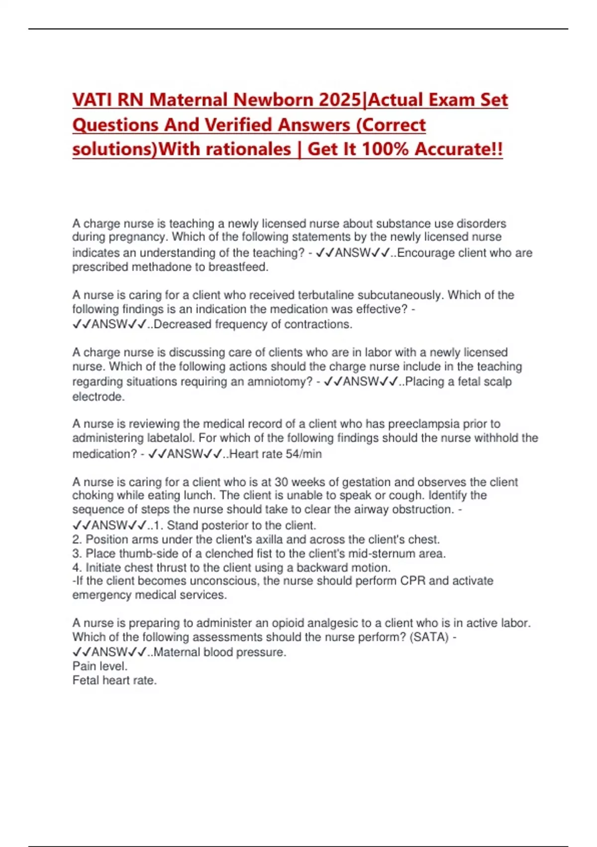 Questions And Verified Answers (Correct