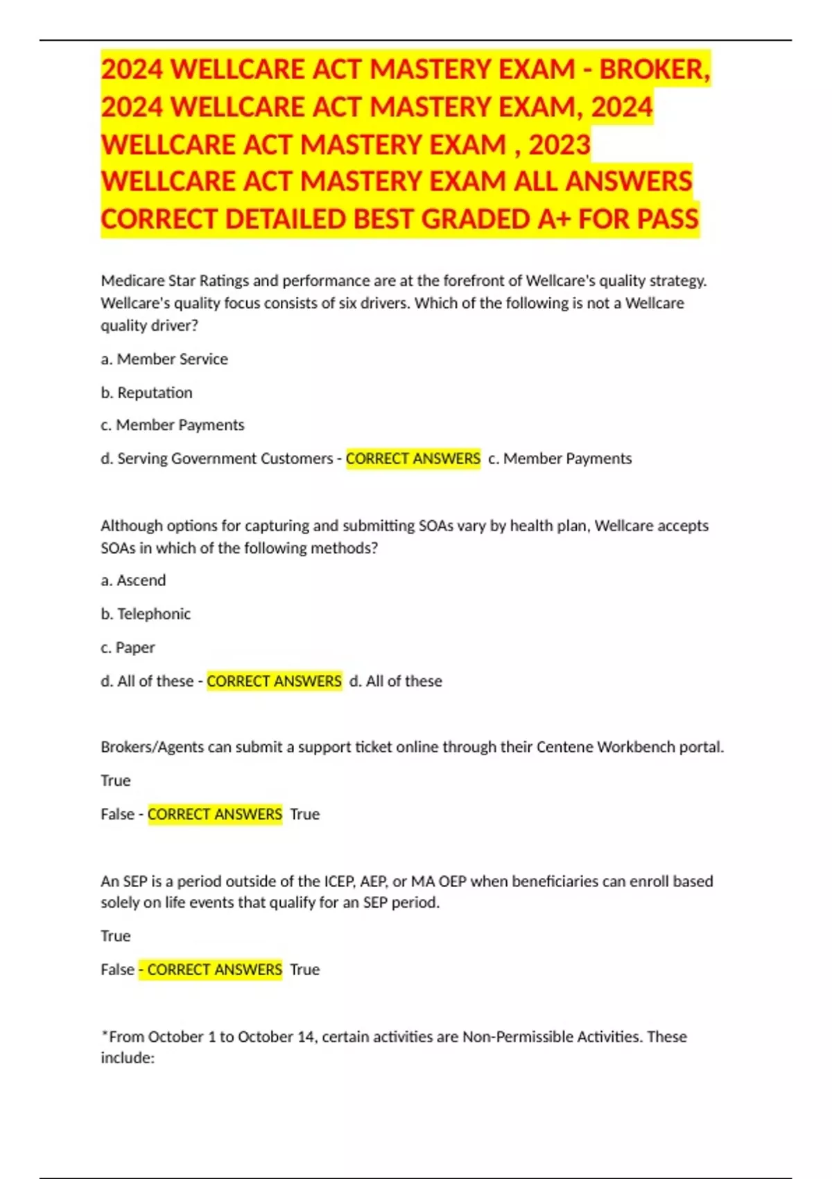 2024 WELLCARE ACT MASTERY EXAM - BROKER,