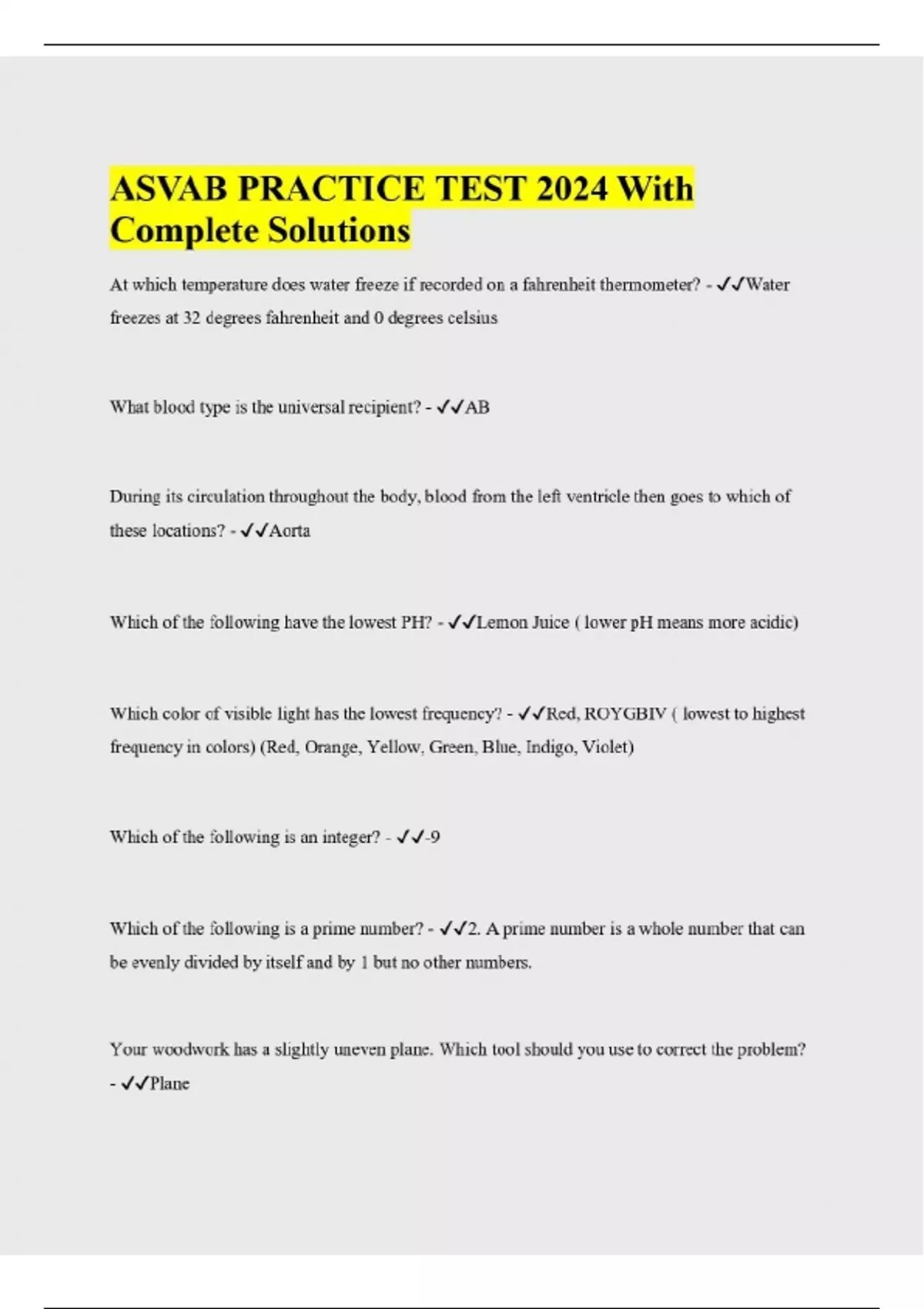 ASVAB PRACTICE TEST 2024 With Complete Solutions