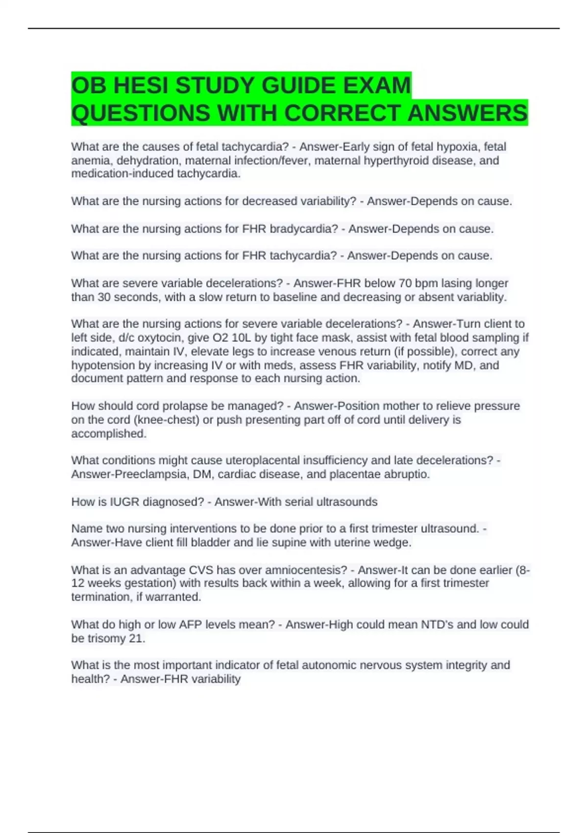 OB HESI STUDY GUIDE EXAM