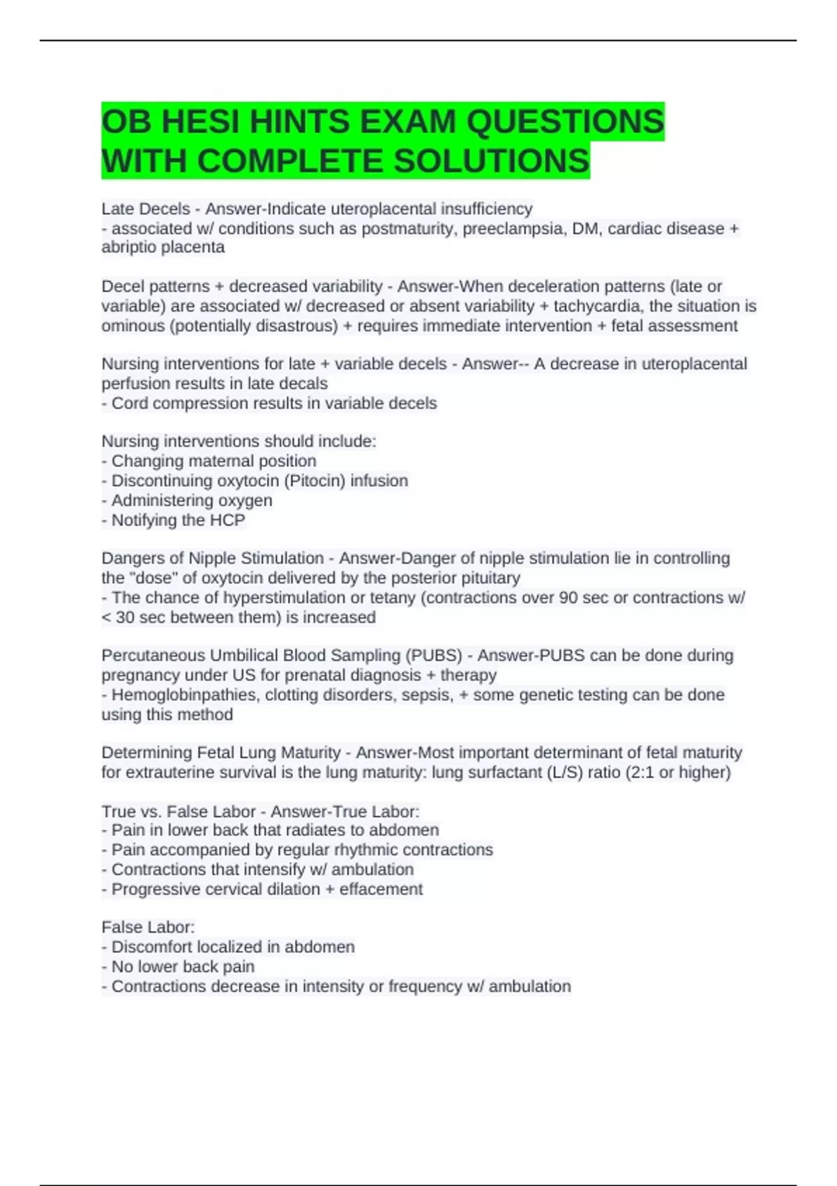 Nursing interventions for late + variable decels - Answer-- A decrease in uteroplacental