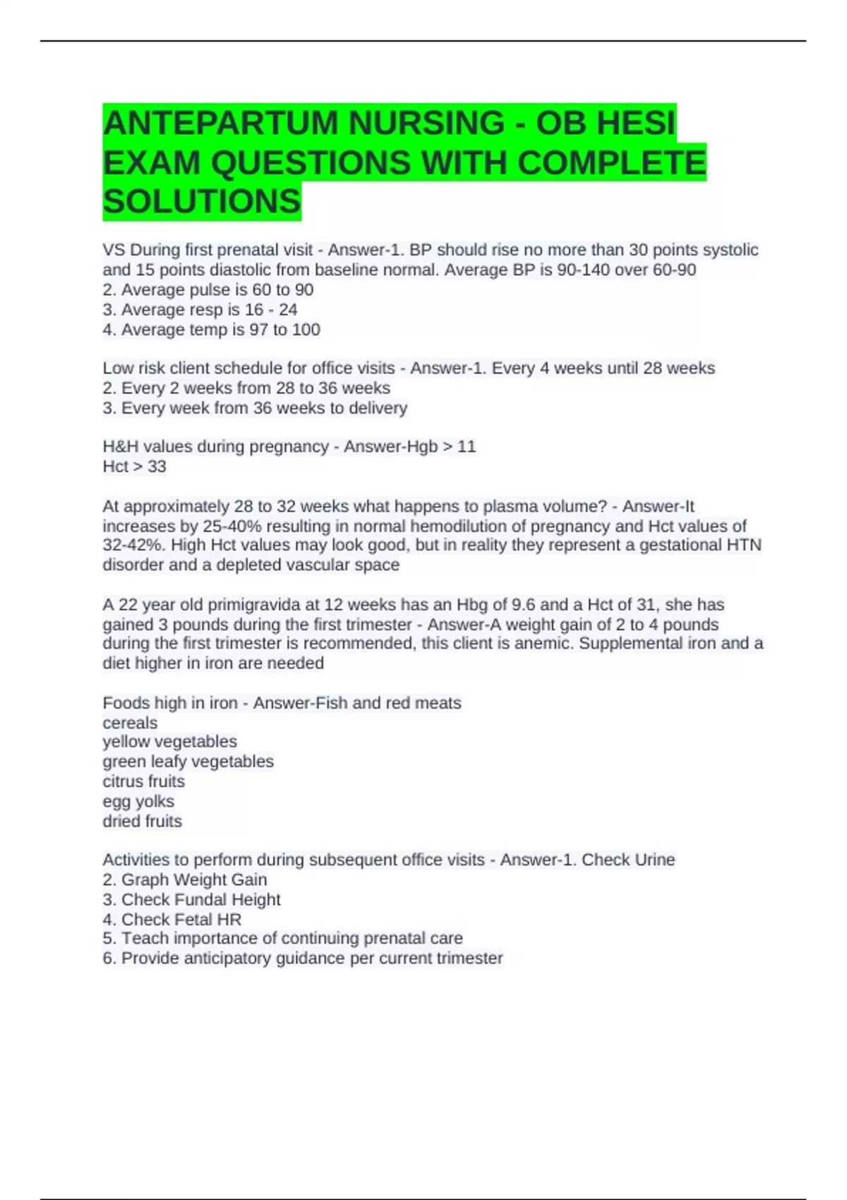 VS During first prenatal visit - Answer-1. BP should rise no more than 30 points systolic