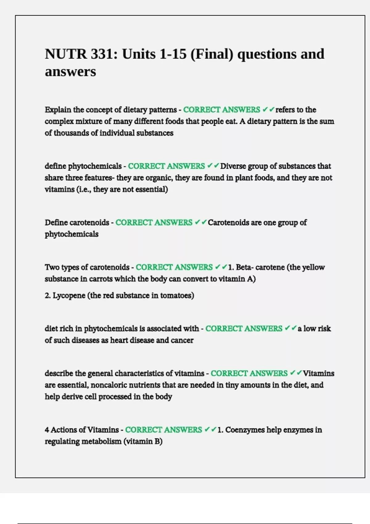 ANSWERS ✔✔1. Fat soluble Vitamins (ADEK) are found in the fats and oils of foods