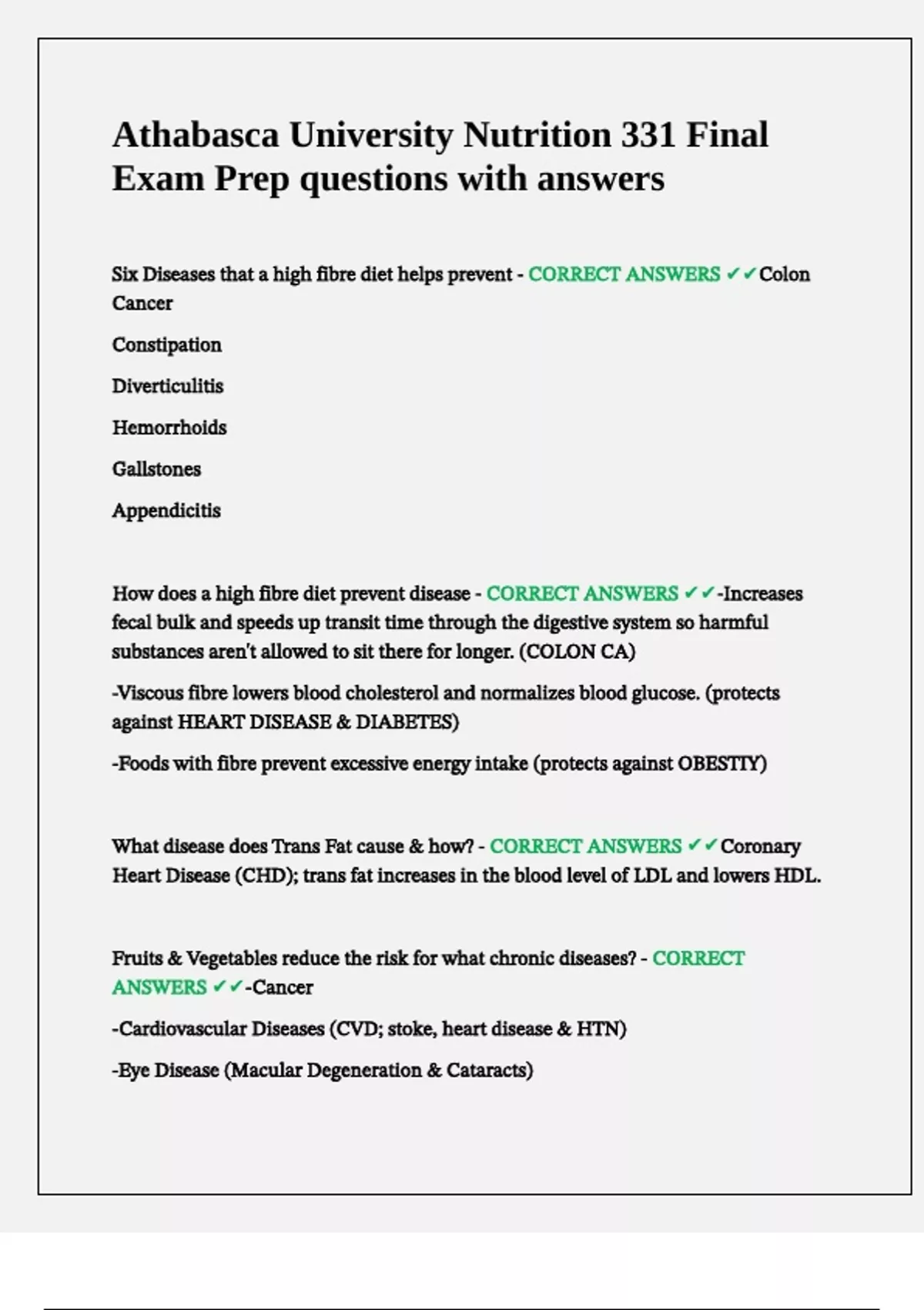 Athabasca University Nutrition 331 Final Exam Prep questions with answers